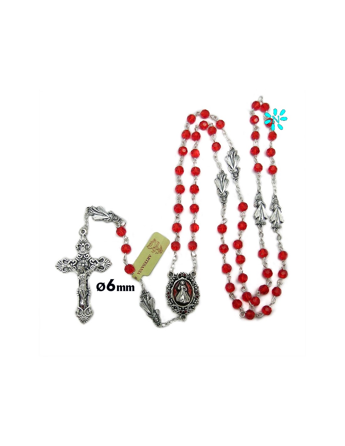 Rosario Cristal Tallado Rojo 6Mm Divina Misericordia En Paters Y Maria Esmaltada