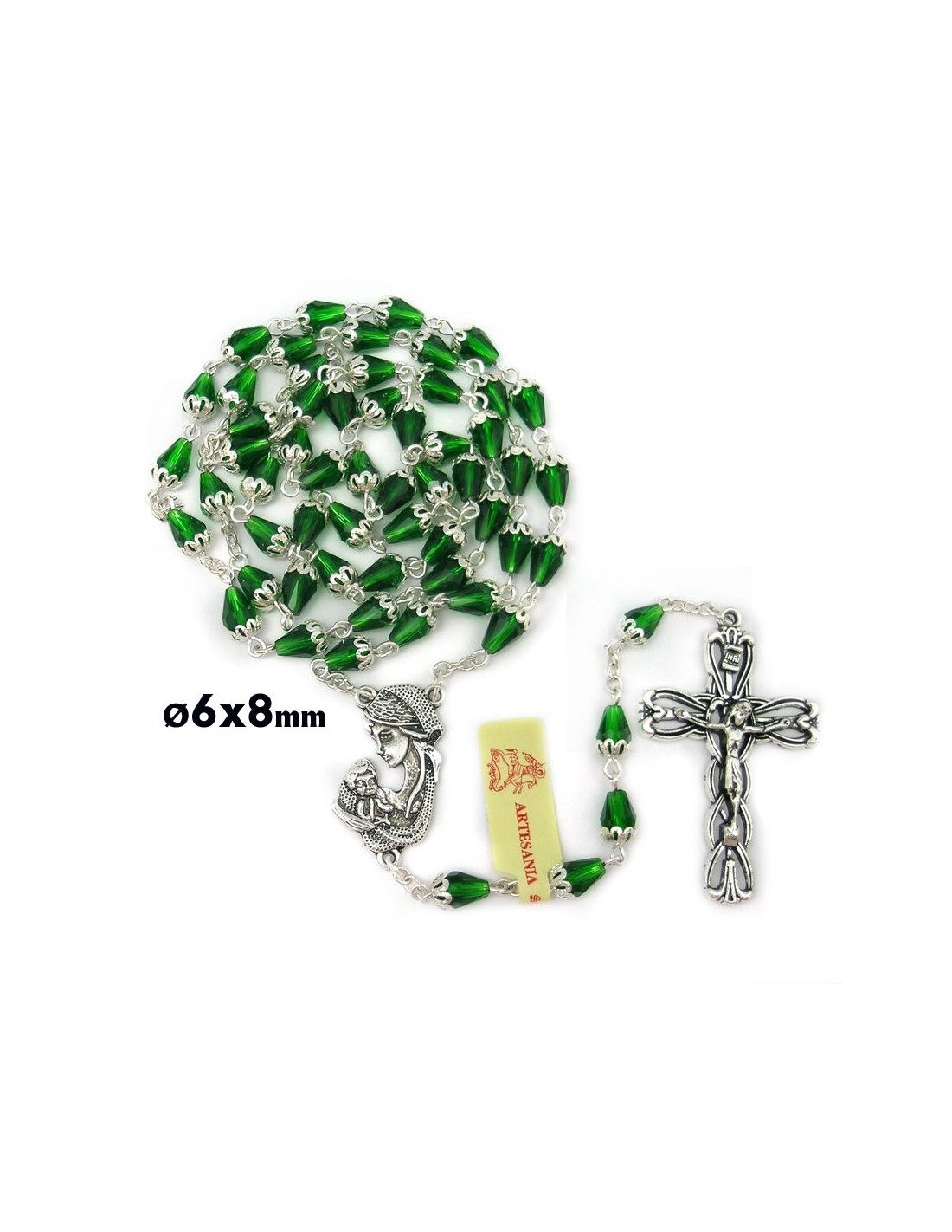 Rosario Cristal Verde Tipo Lagrima Con Copeta Superior 6X8mm