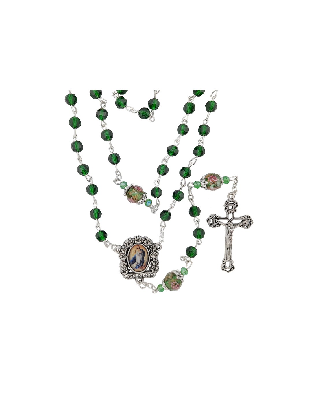 Rosario Cristal Tallado 6mm Rosa Pater 10mm Con Rosa Interna
