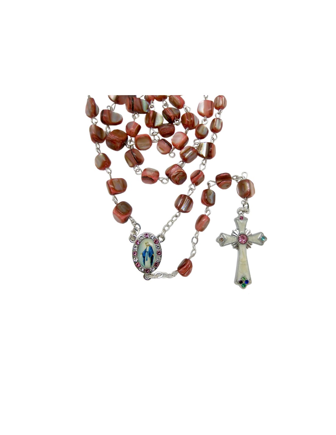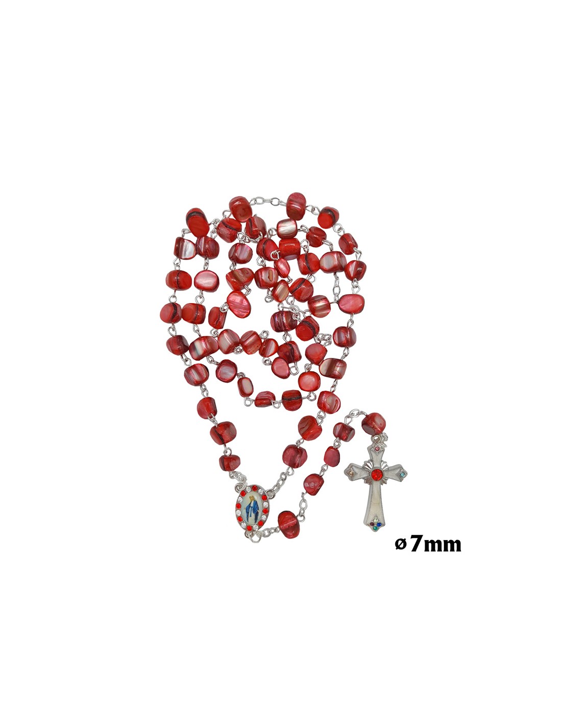 Rosario Nacar Irregular Perlado Rojo 7Mm Maria Con Strass