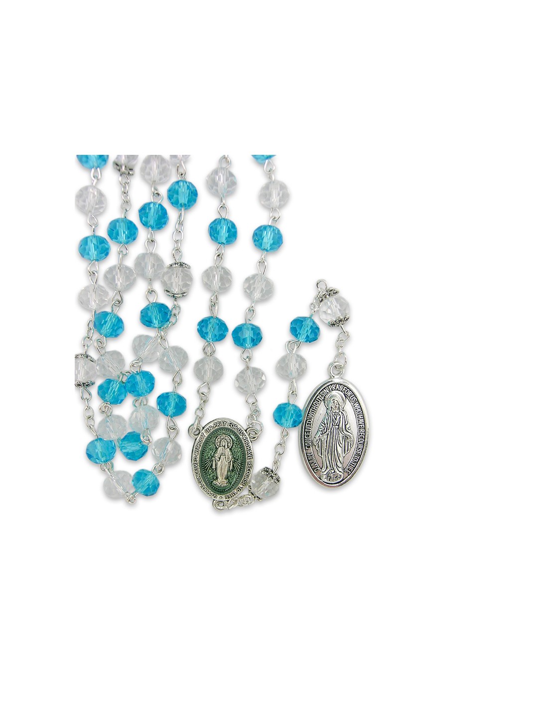 Rosario Cristal Medalla Milagrosa Oval 8x6mm Paters Trasparentes Con Copetas