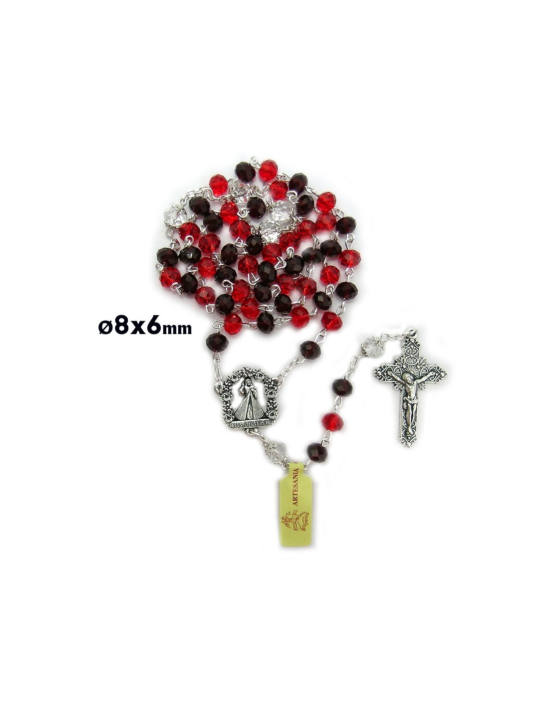 Rosario Cristal Tallado 8X6cm Divina Misericordia Paters Con Copeta