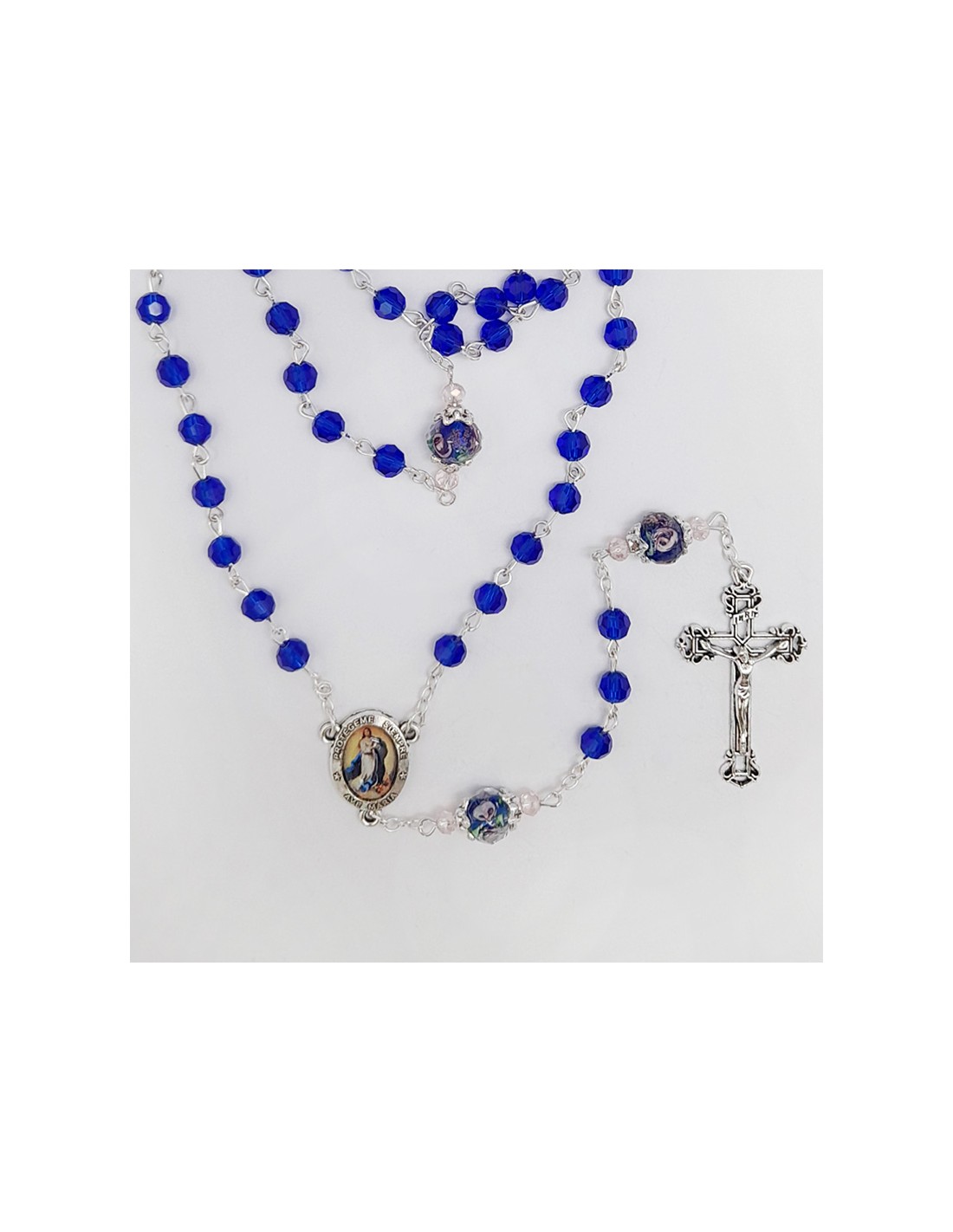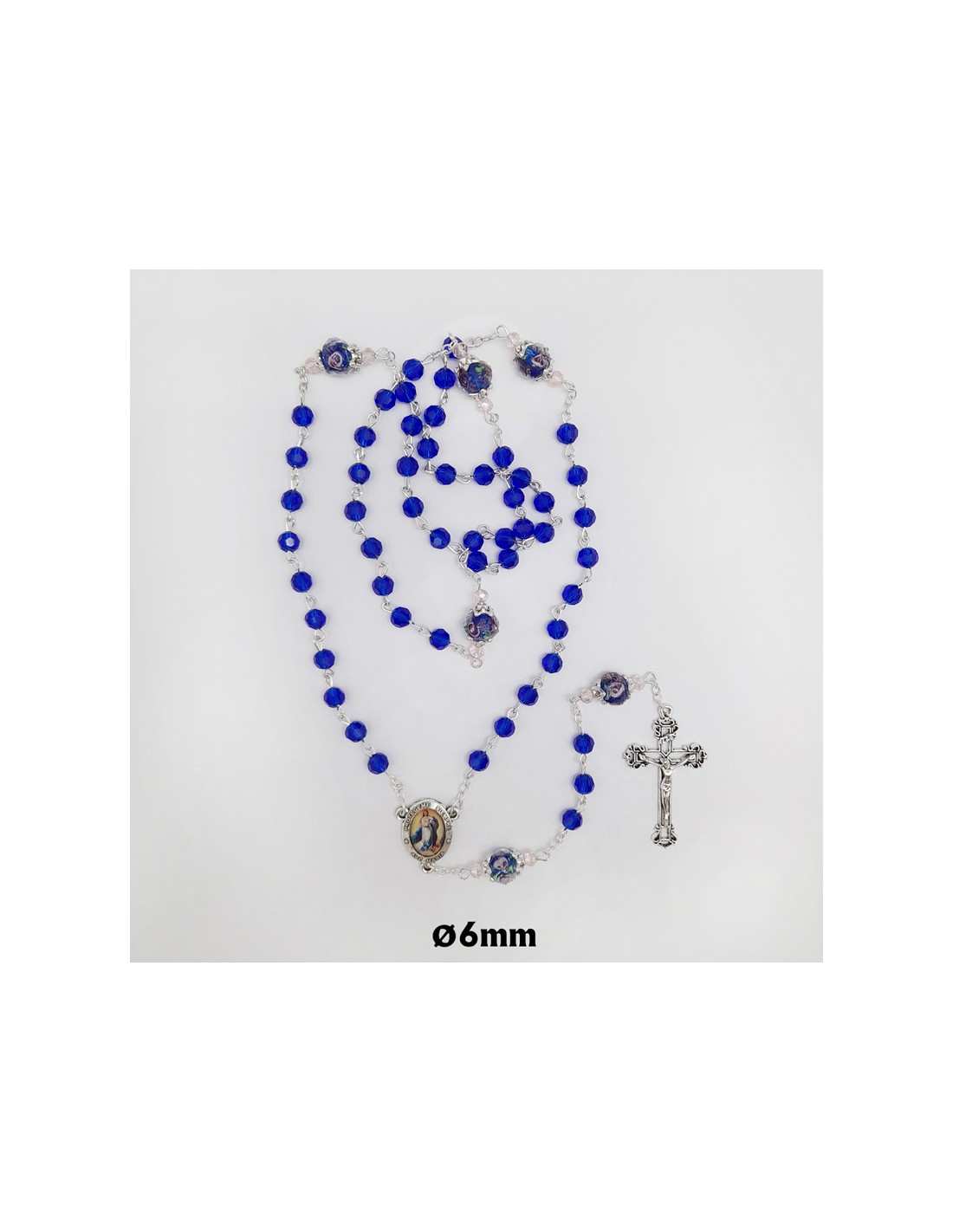Rosario Cristal Tallado 6Mm Azul Pater 10Mm Con Rosa Interna