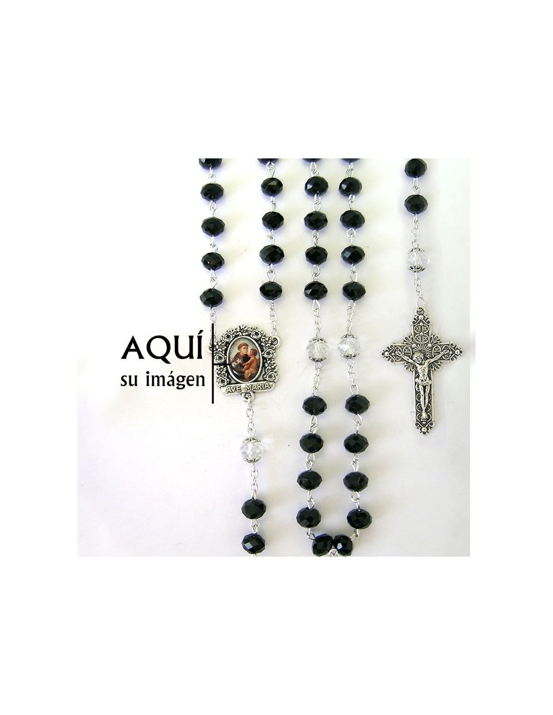 Rosario Cristal Negro Oval 8X6mm Paters Trasparentes Con Copetas