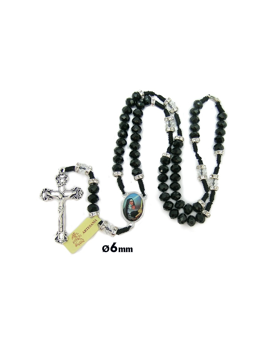 Rosario Cuerda Bola Negra Cristal Opaca 8Mm Con Piedras En Paters