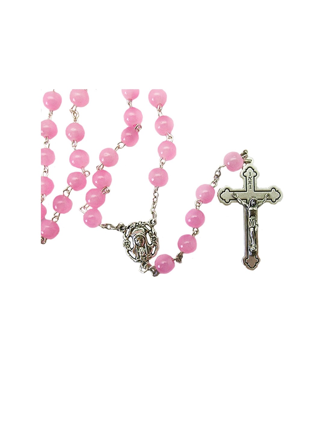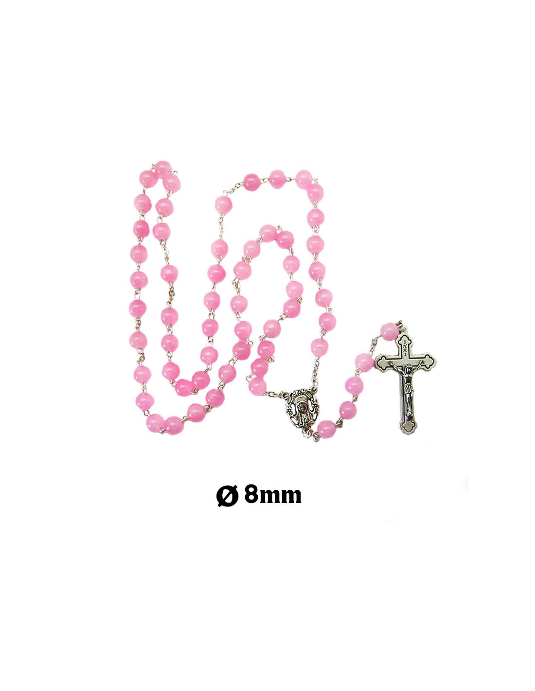 Rosario Cristal Liso 8mm Rosa Con Crucifijo Metal