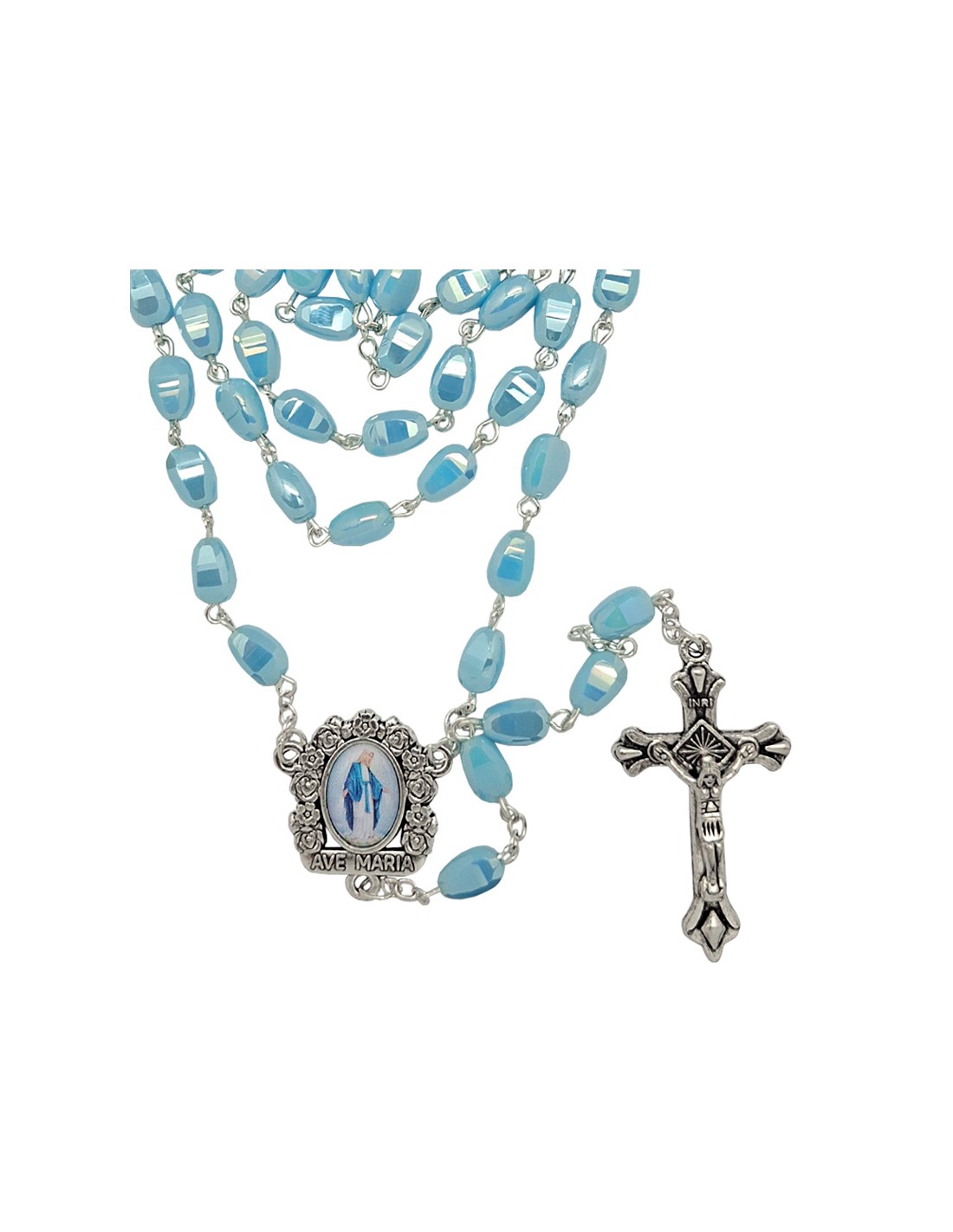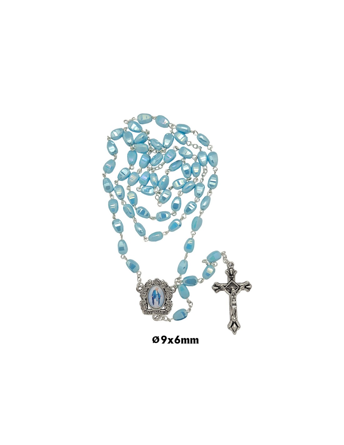 Rosario Cristal Tallado 9X6mm Celeste Satinado Gota Agua