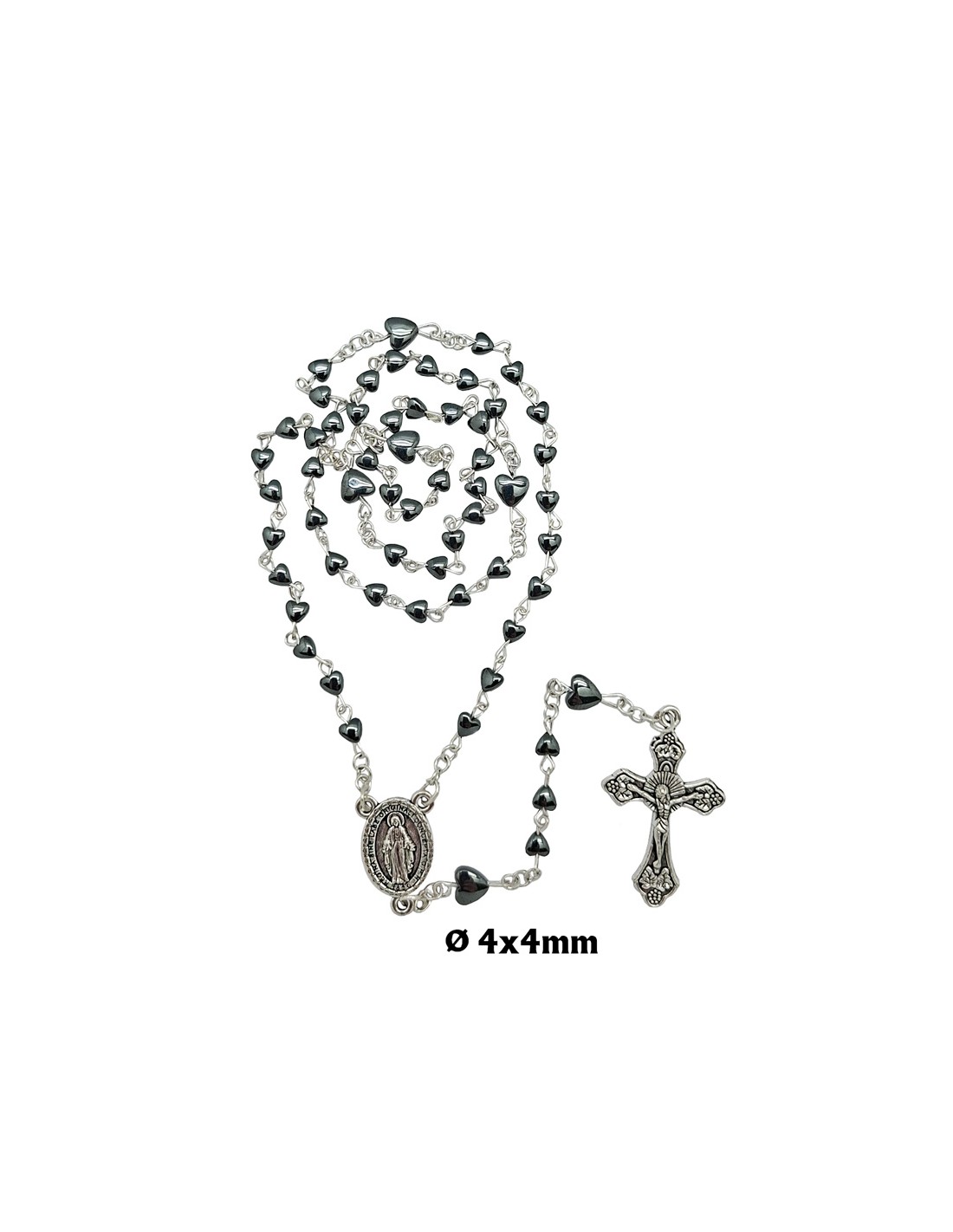 Rosario Hematita Corazones 4Mm Paters...
