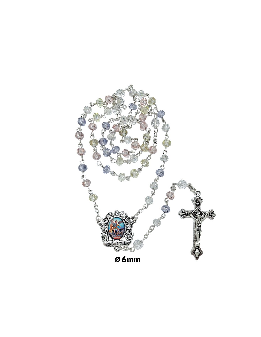 Rosario Cristal Tallado 6Mm Colores Surtidos Claros Corte Laminado