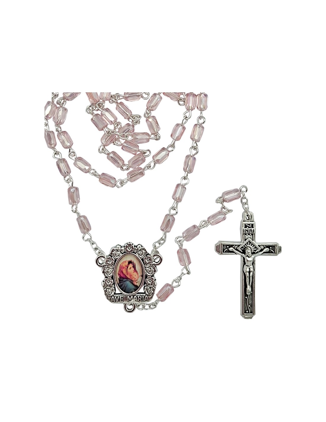 Rosario Cristal Tallado 6X4mm Rosa Tipo Barril Esquinas Cortadas
