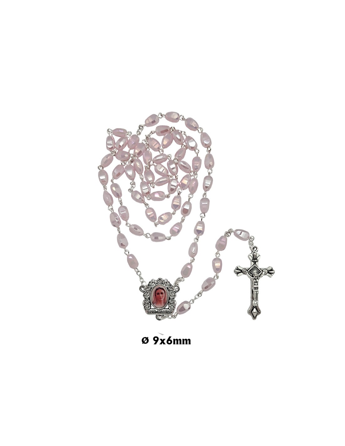 Rosario Cristal Tallado 9X6mm Rosa Satinado Gota Agua