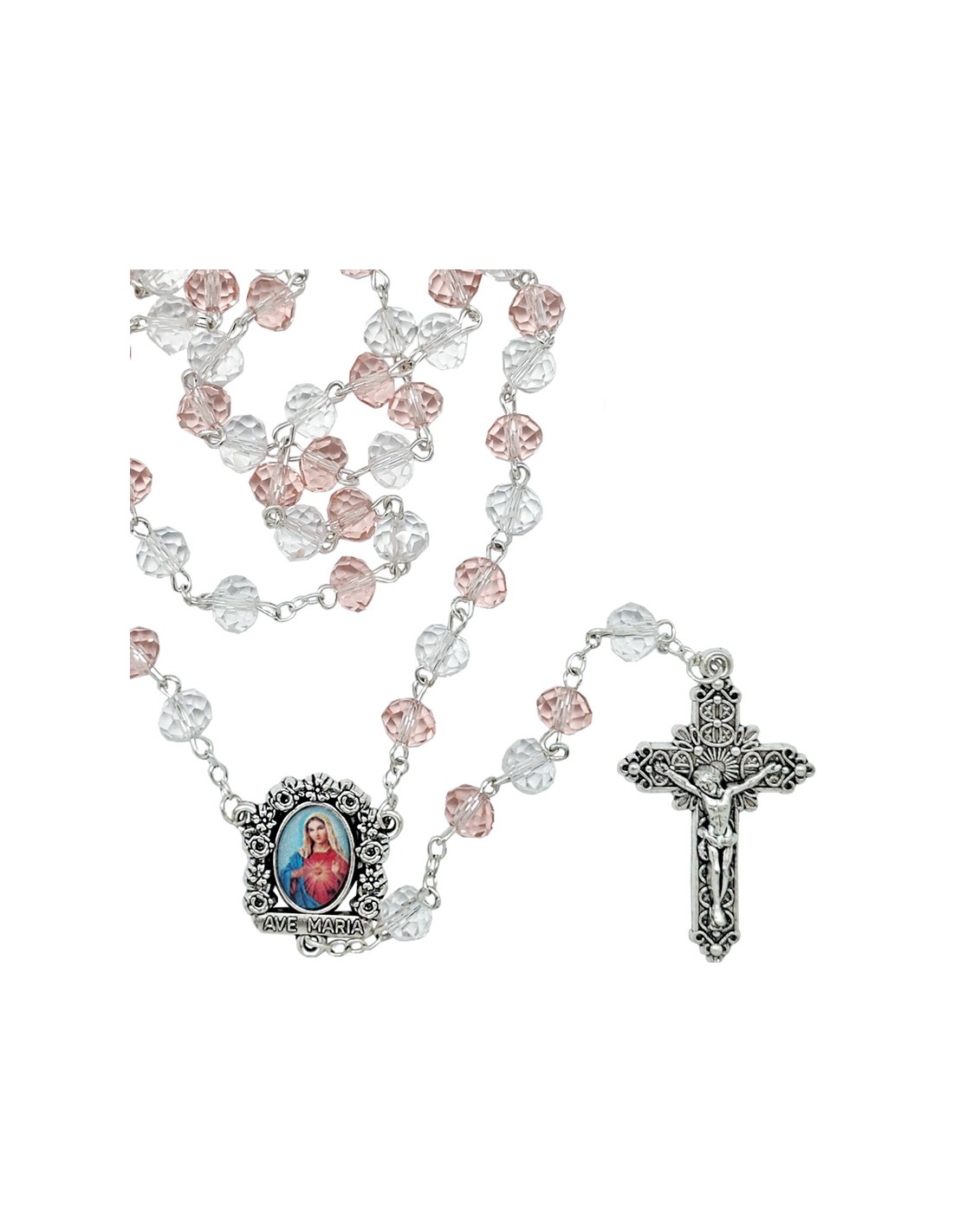 Rosario Cristal Oval 8X6mm Trasparente Y Rosa Alternos