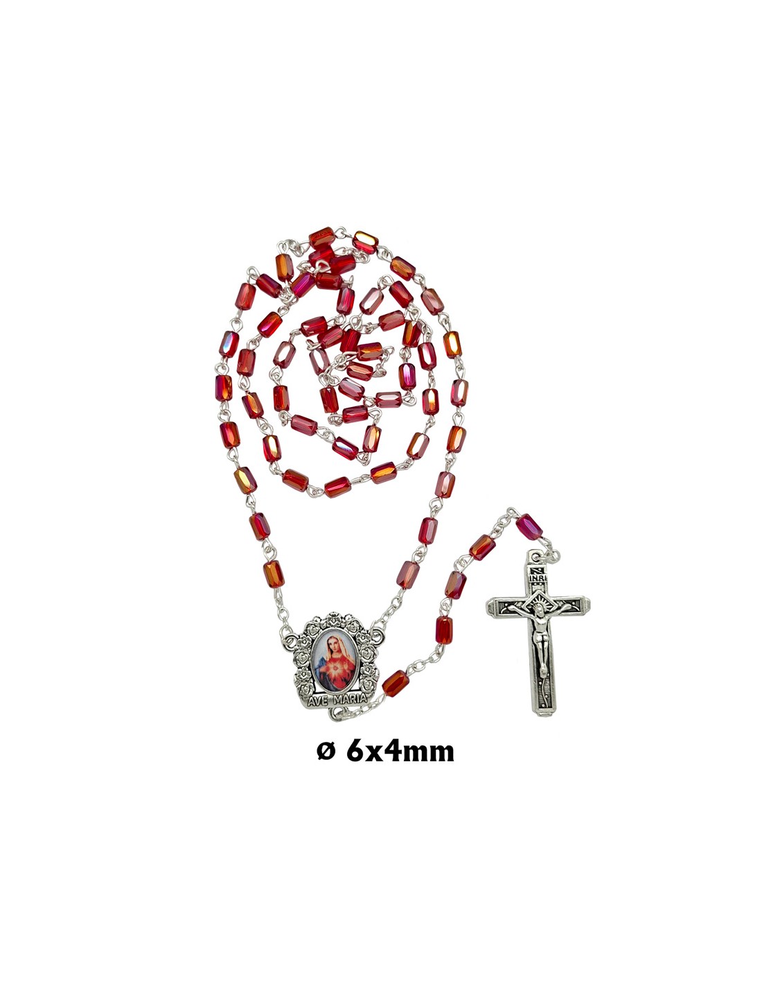 Rosario Cristal Tallado 6X4mm Rojo...
