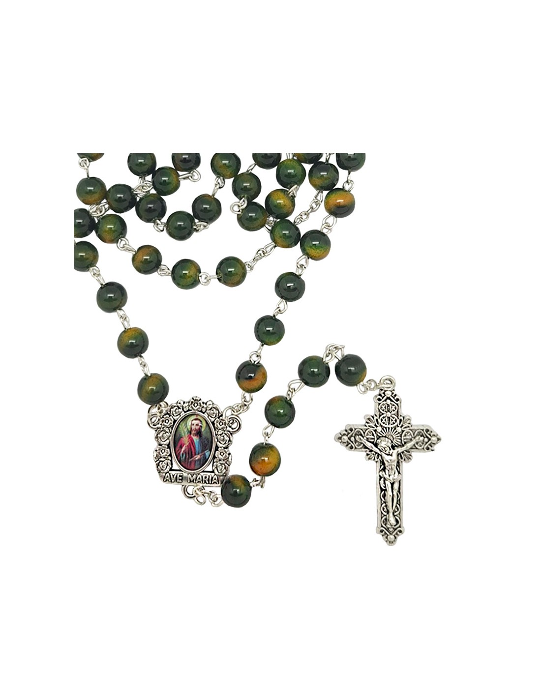 Rosario Cristal Liso 8Mm Verde Y...