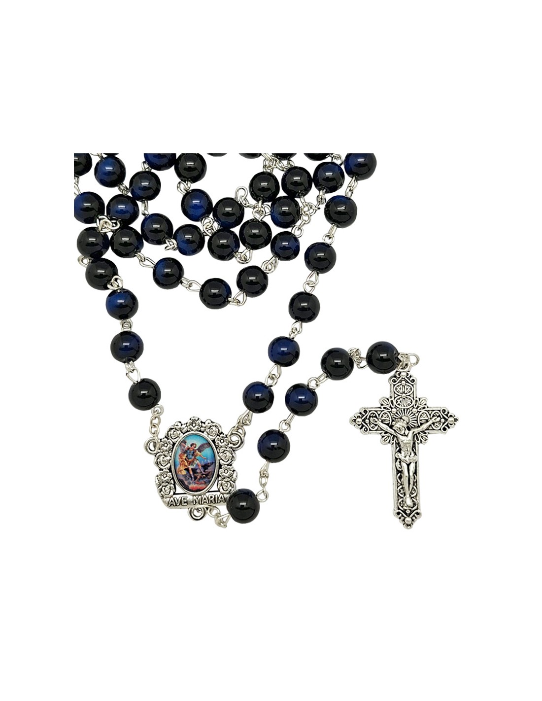 Rosario Cristal Liso 6Mm Azul Intenso Y Negro