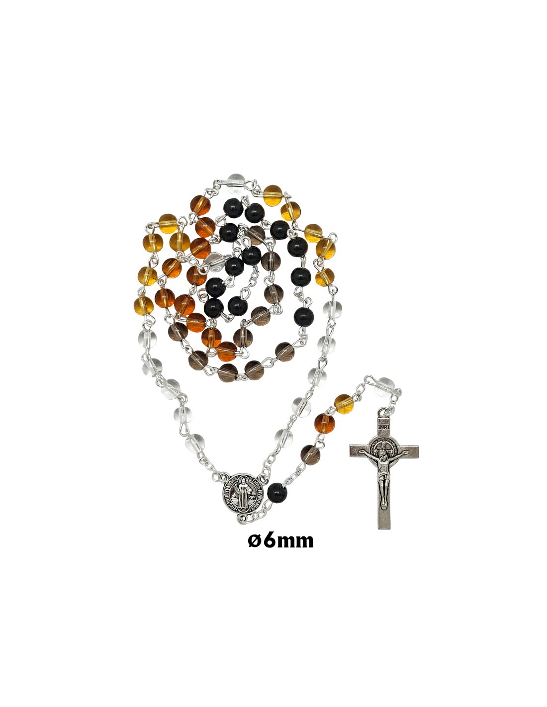 Rosario Cristal Liso 6Mm San Benito Multicolor Fases De Trasparente A Negro