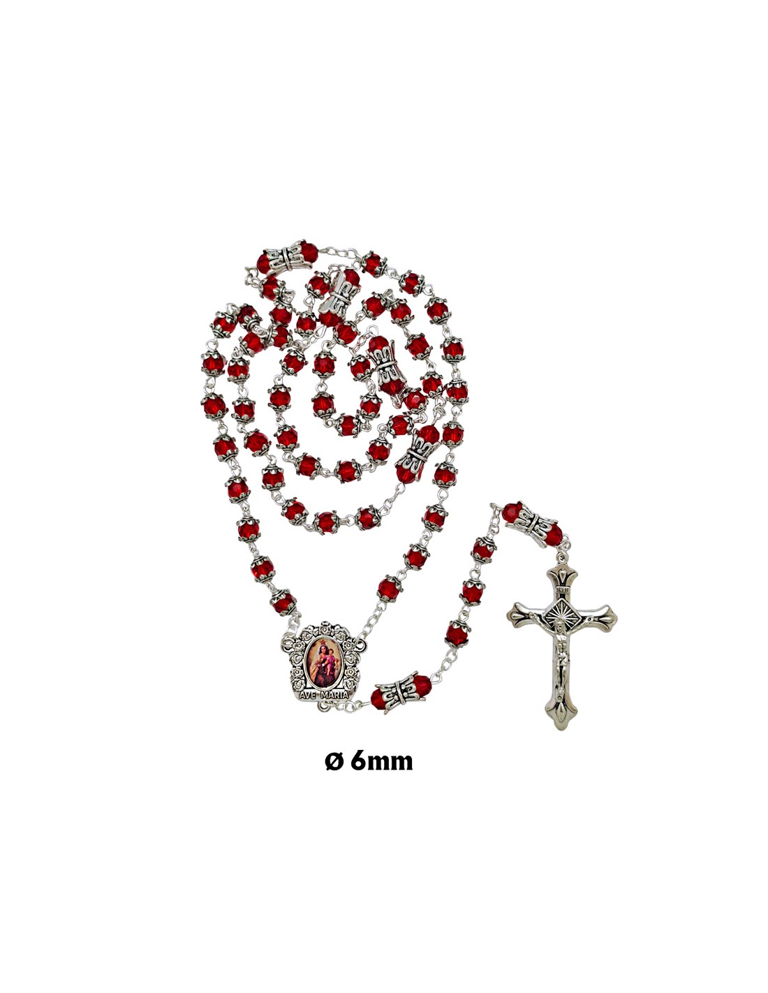 Rosario Cristal Tallado 6Mm Rojo Con...