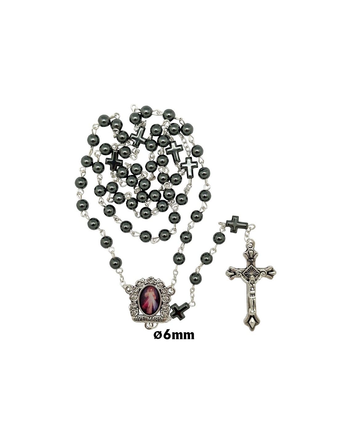 Rosario Hematita Liso 6Mm Paters Cruz Hematita