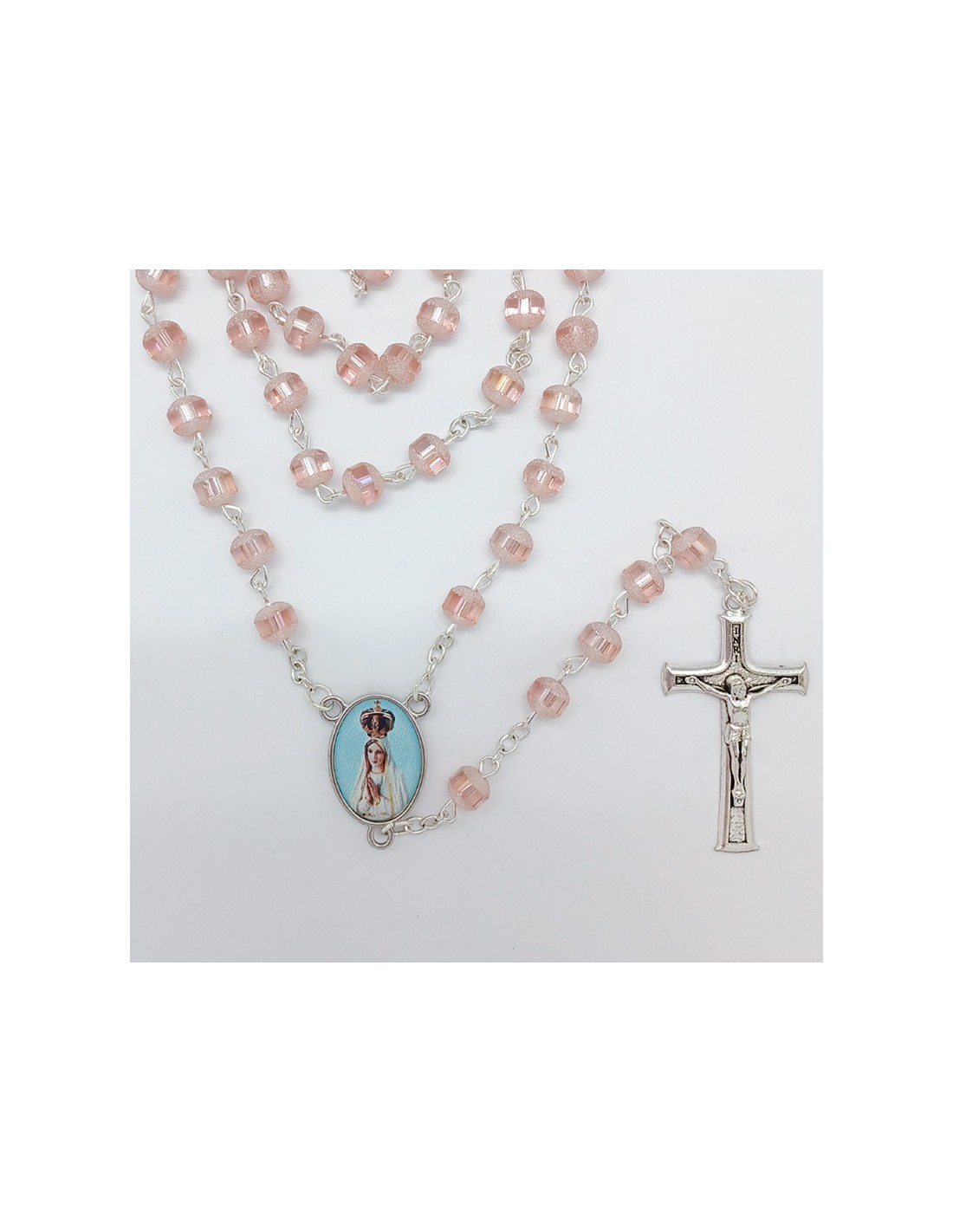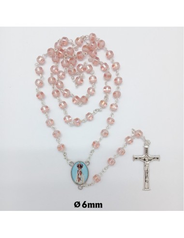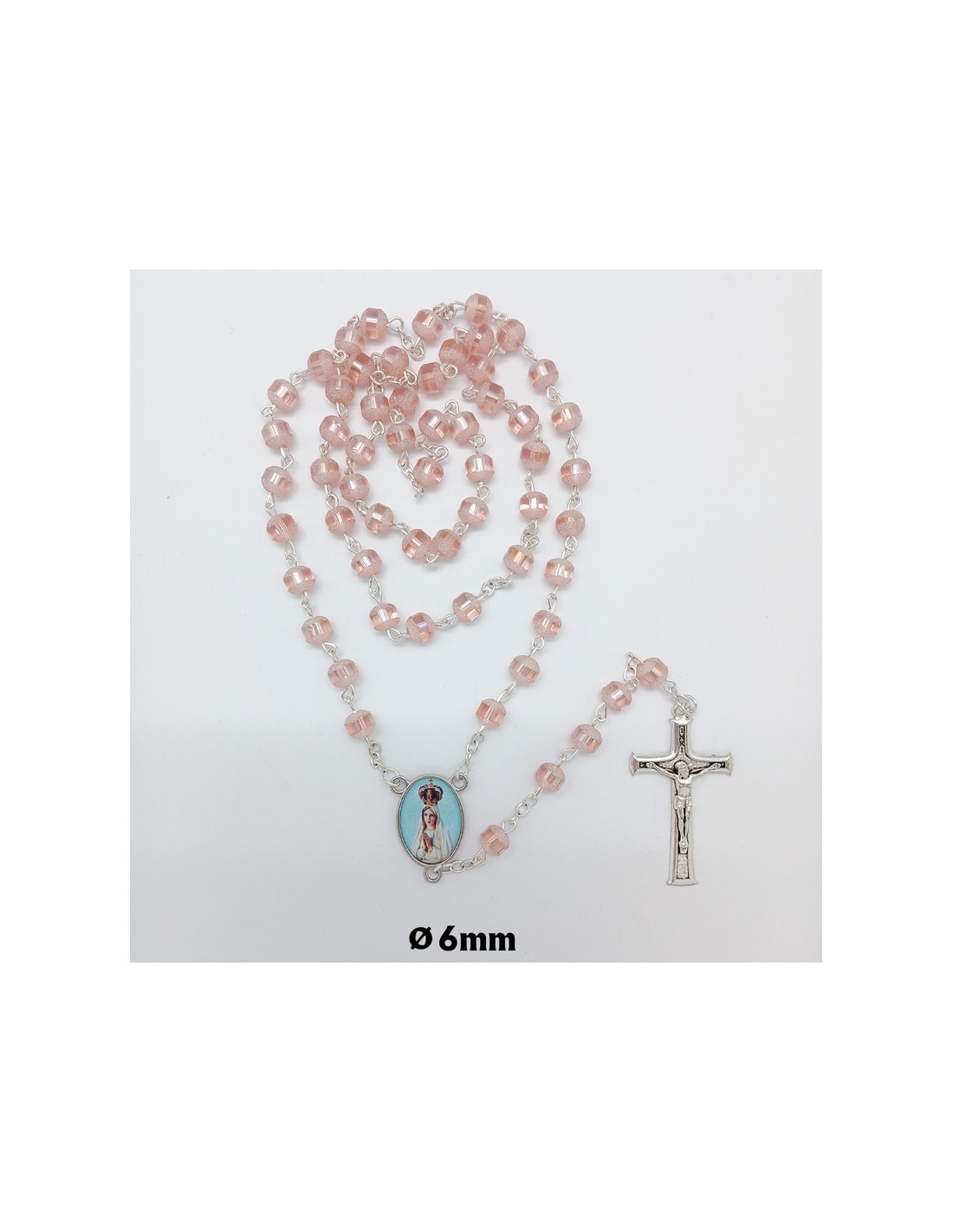 Rosario Cristal 6mm rosa achatado opaco con linea central lisa