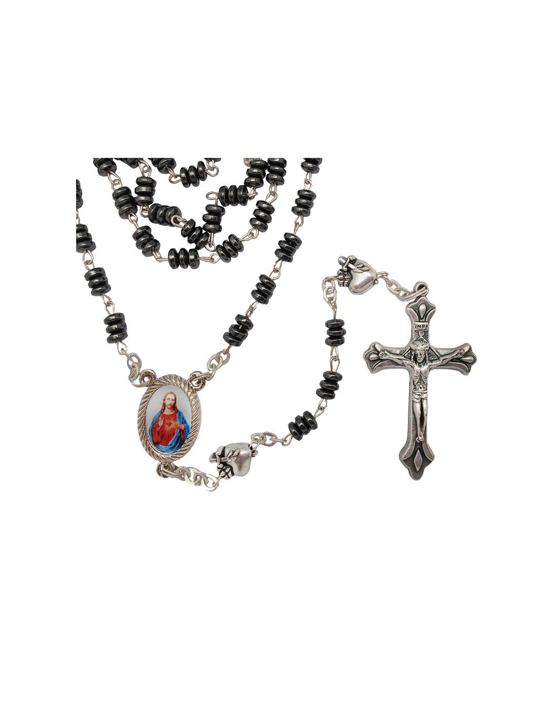 Rosario Hematites Grano 3 Discos Paters Corazon Metal Con Puñal