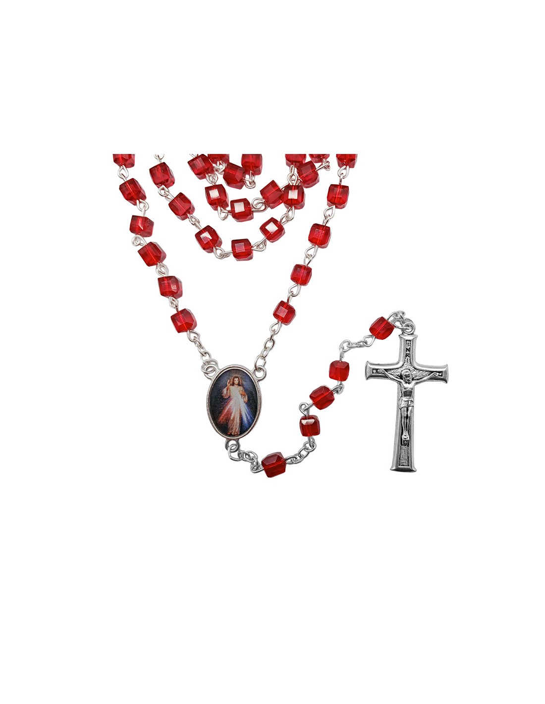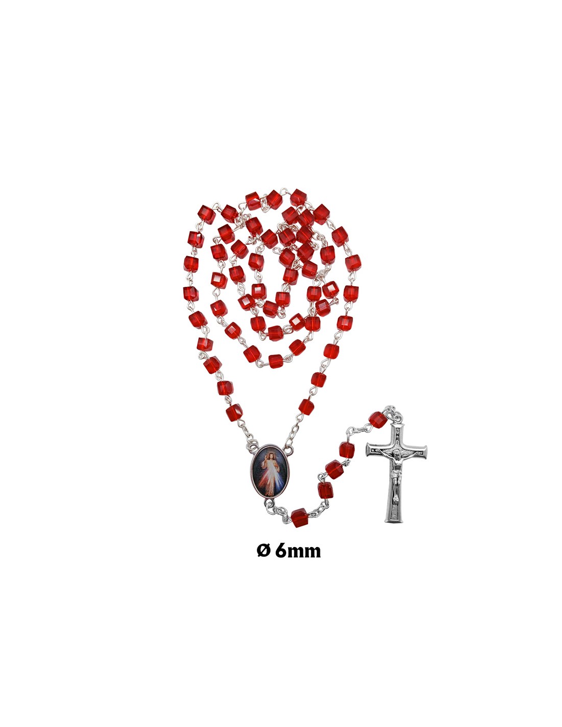 Rosario Cristal Forma Cubo 6X6mm Rojo