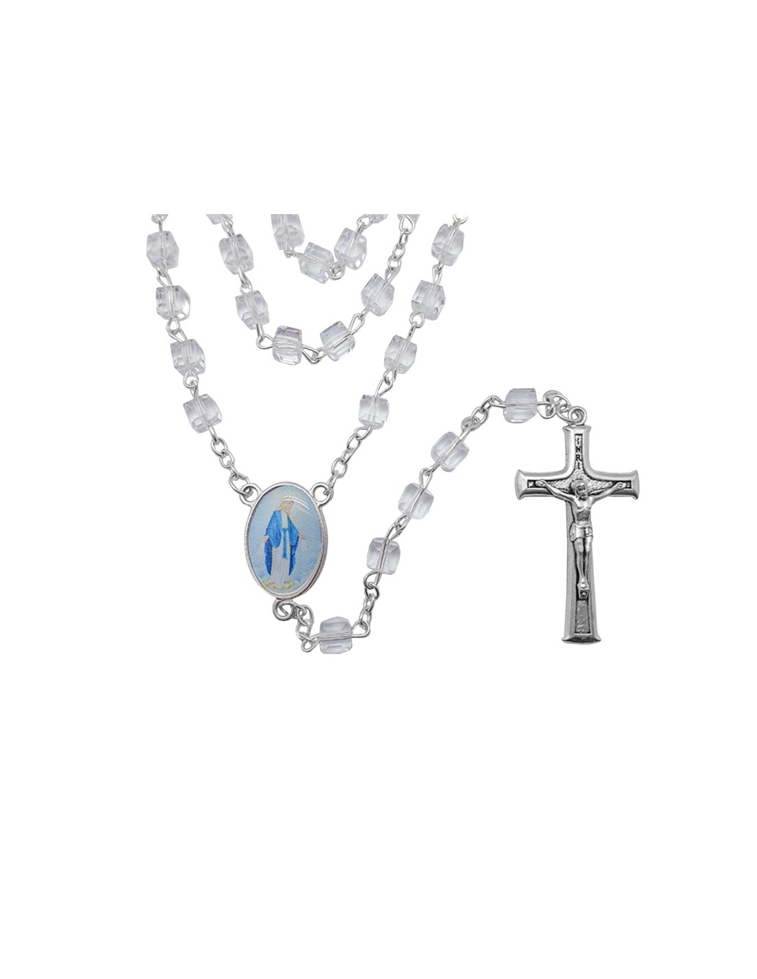 Rosario Cristal Forma Cubo 6X6mm Transparente