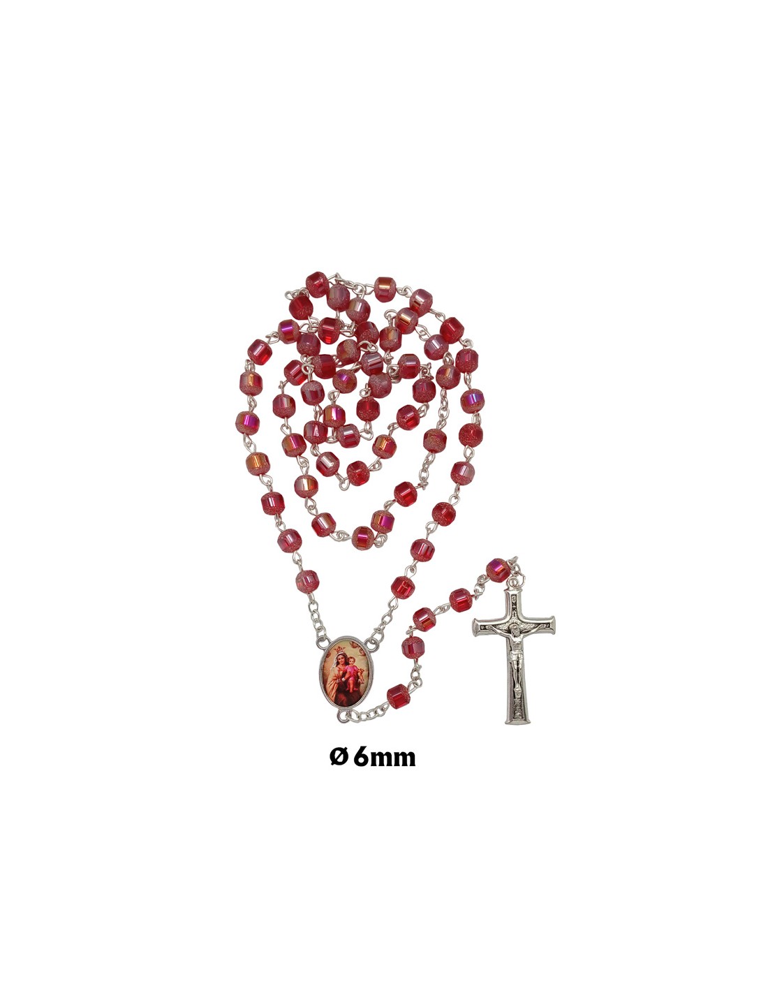 Rosario Cristal 6Mm Rojo Achatado...