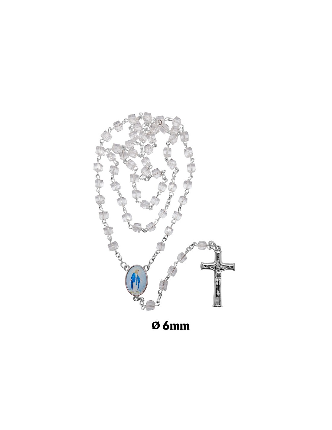 Rosario Cristal Forma Cubo 6X6mm Transparente