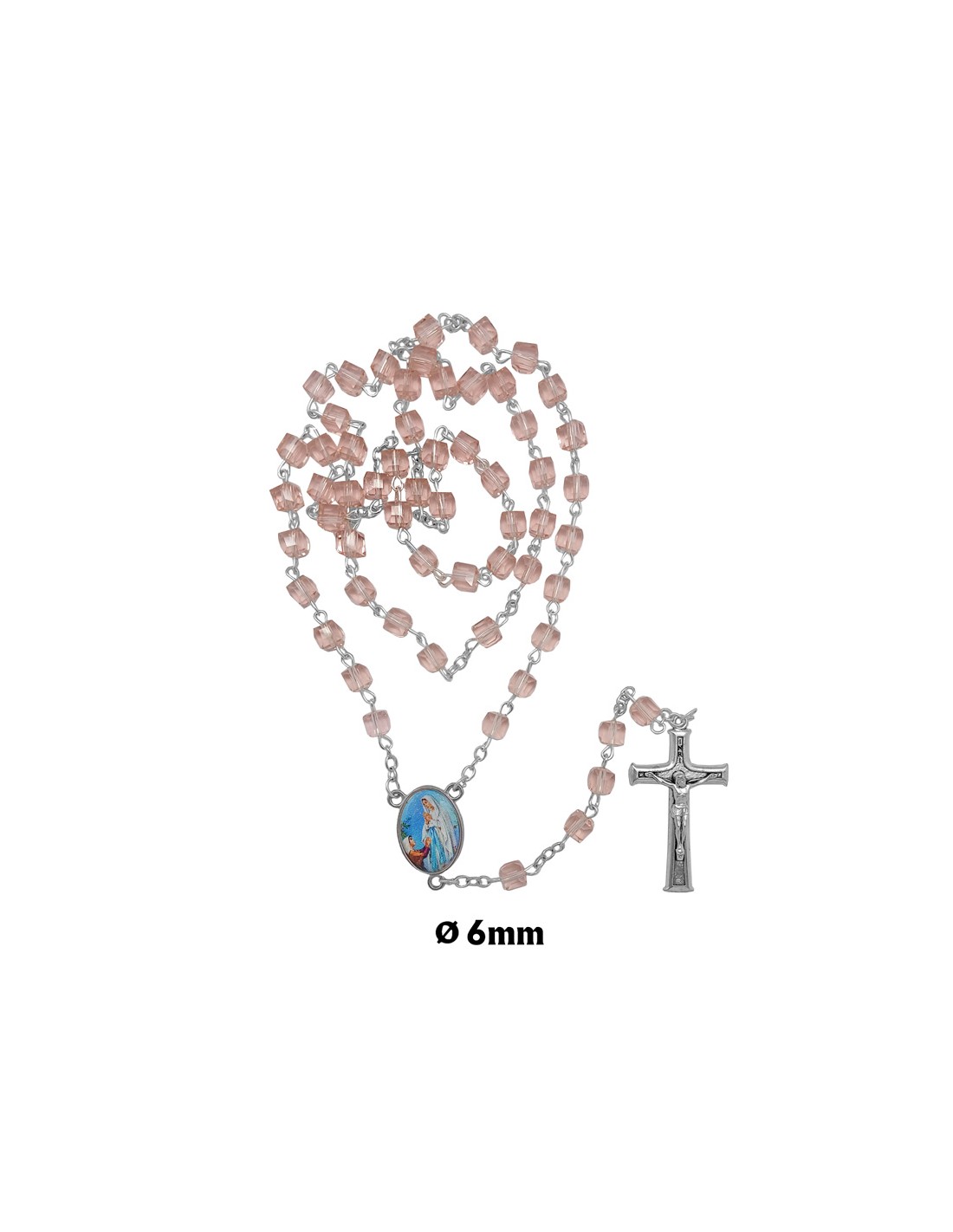 Rosario Cristal Forma Cubo 6X6mm Rosa