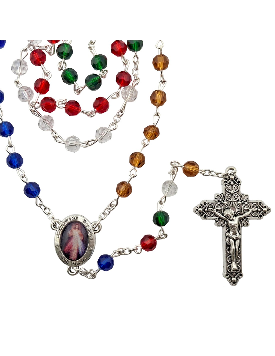 Rosario Cristal Rojo 6mm Tallado Con Paters Corazon Esmaltados