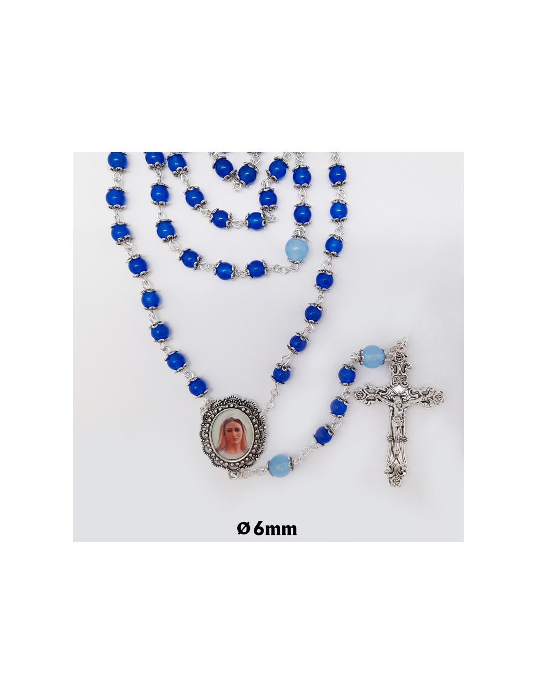 Rosario Cristal Azul Tipo Piedra Liso 6Mm Con Copetas Paters Celetes 8Mm