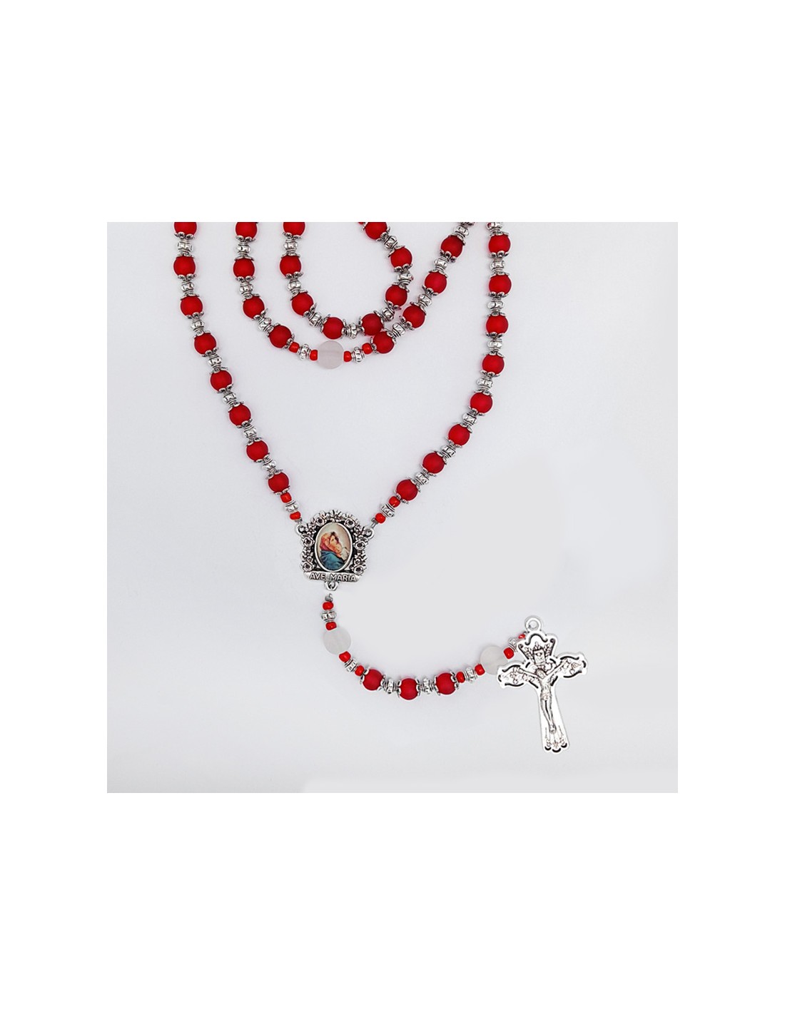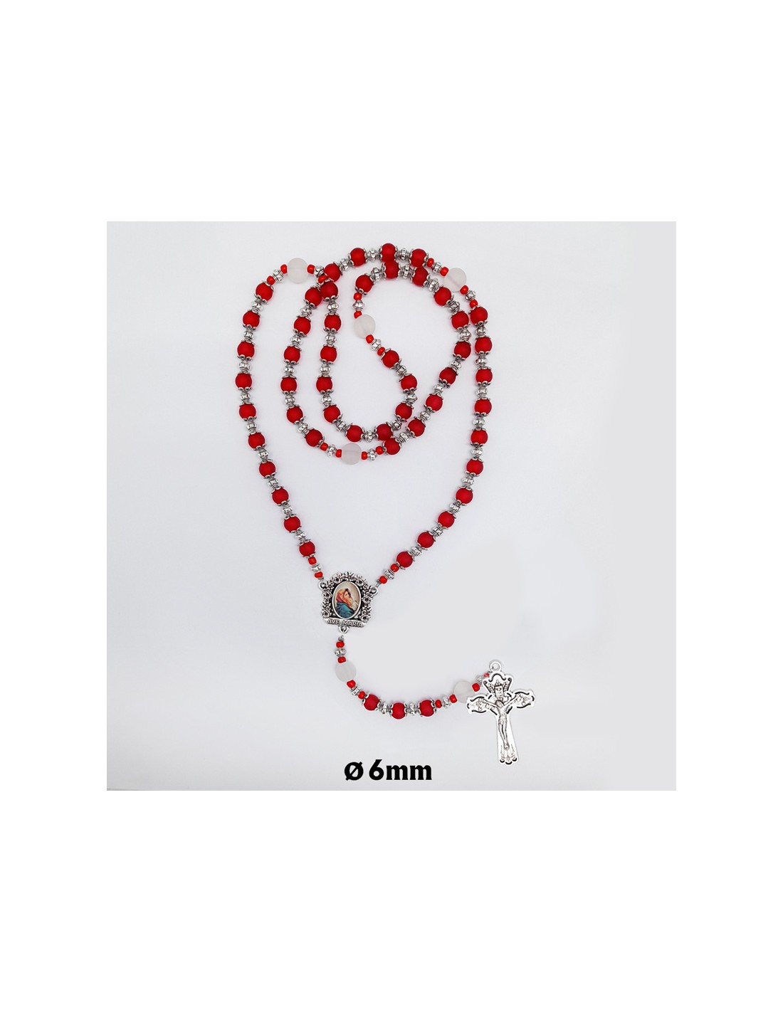 Rosario Cristal Liso Satinado Rojo 6M Con Copetas Pater Blanco 8Mm