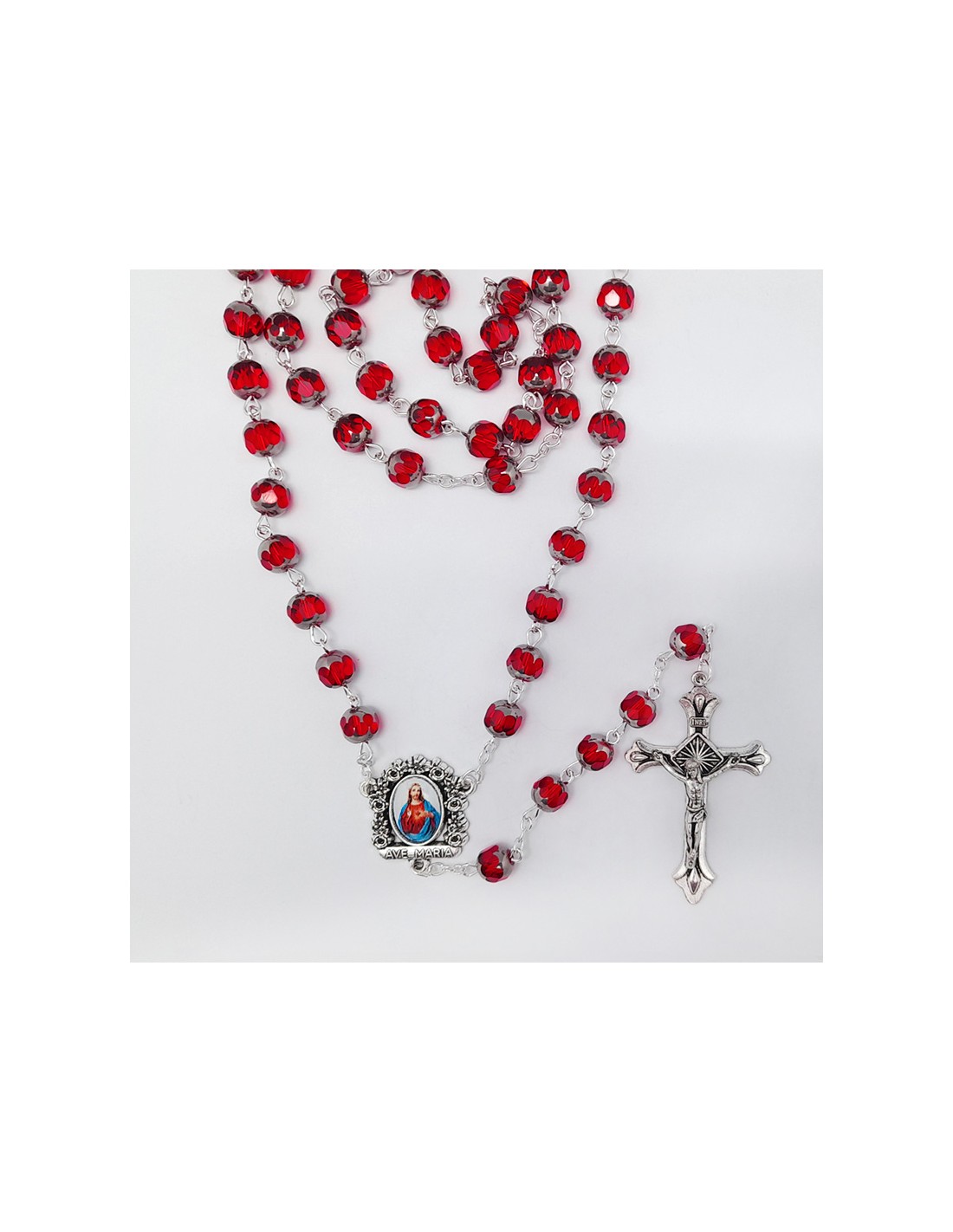 Rosario Cristal Tallado Rojo 8Mm Baño Niquelado En Copeta