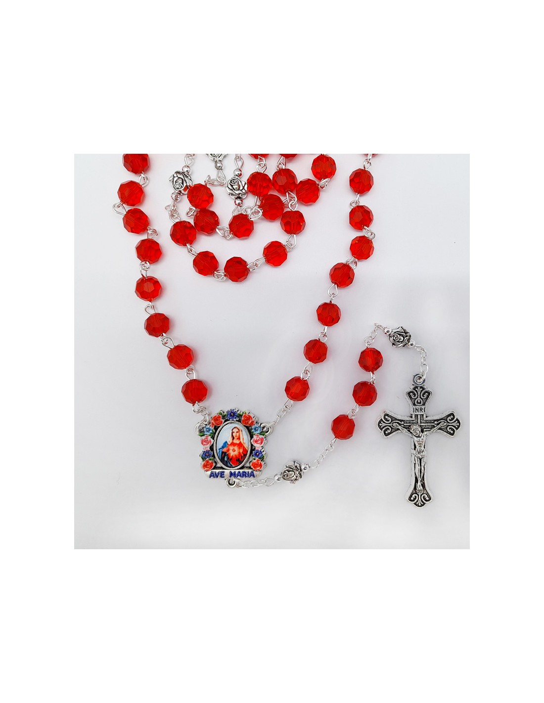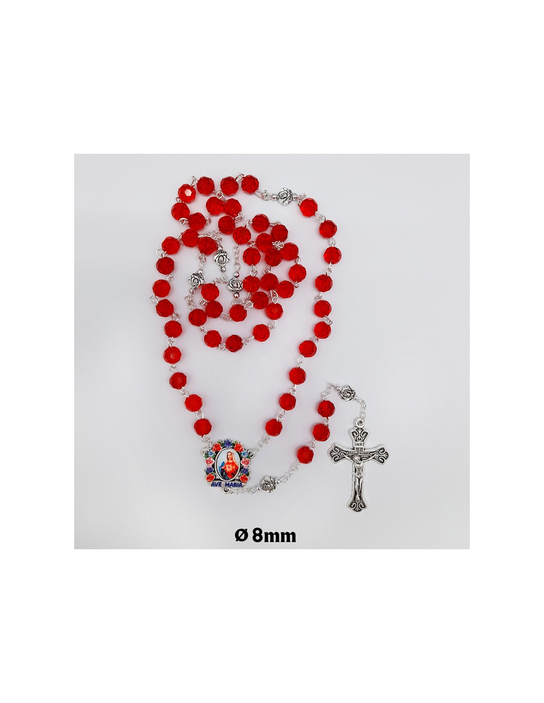 Rosario Cristal Tallado Rojo 8Mm Paters Rosa Metal Maria A Colores