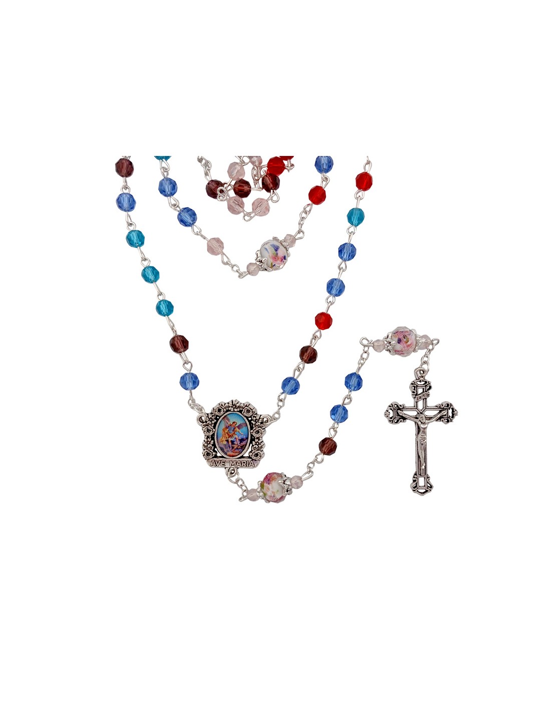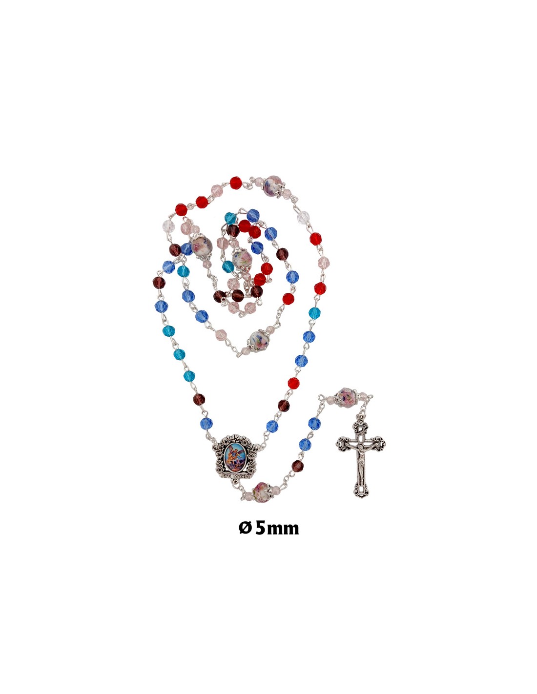 Rosario Cristal Tallado 6Mm Multicolor Pater 10Mm Con Rosa Interna