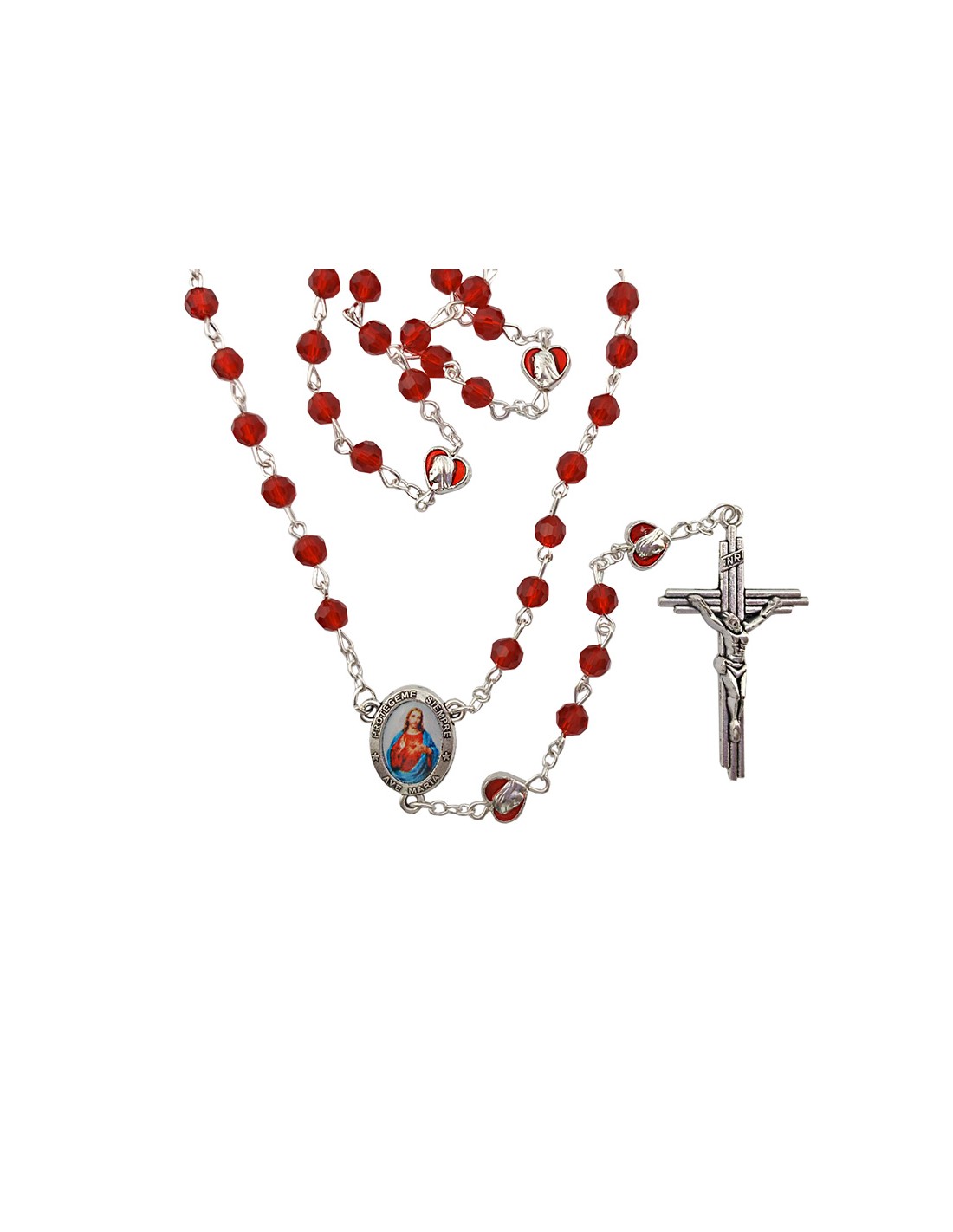 Rosario Cristal Rojo 6Mm Tallado Con Paters Corazon Esmaltados