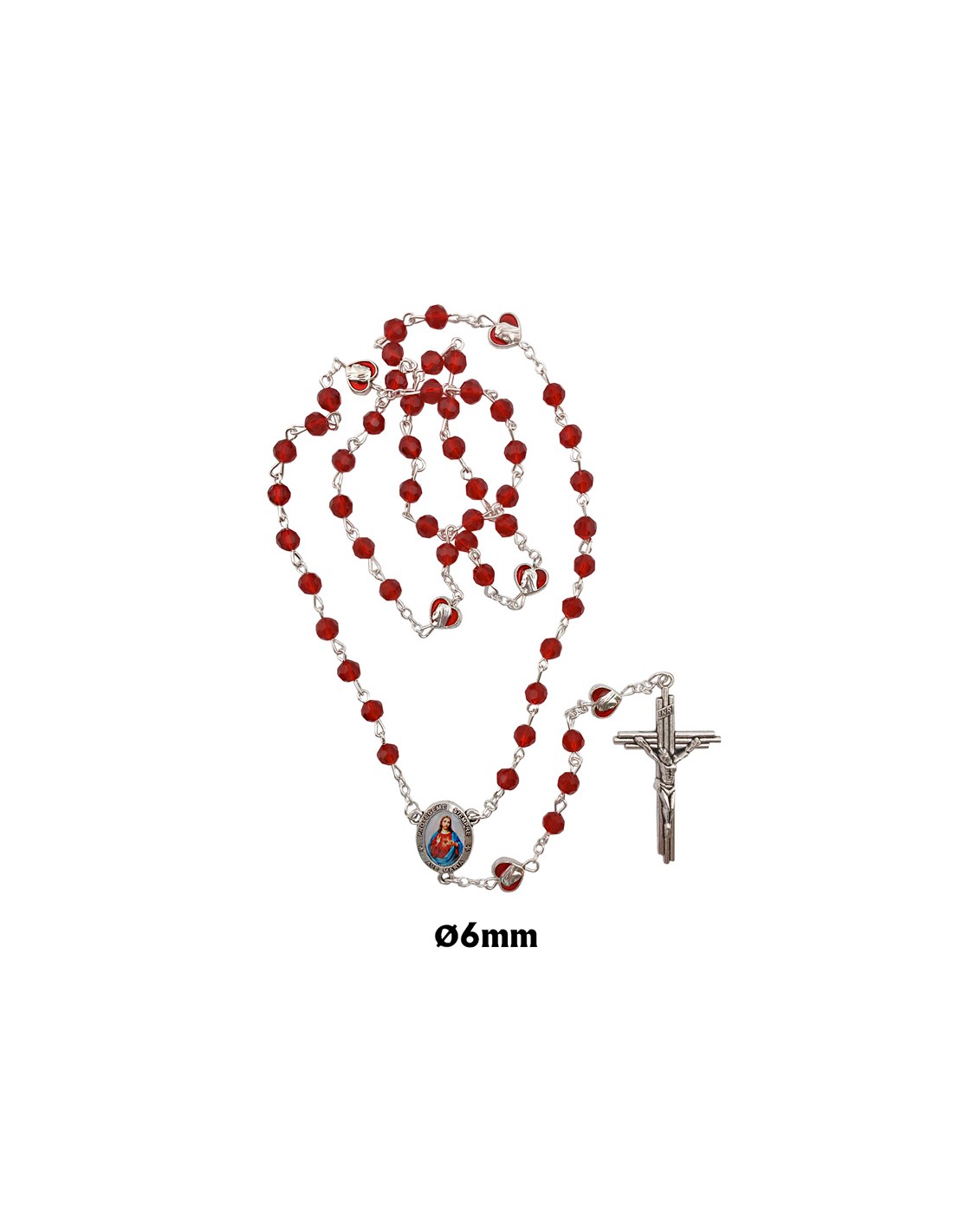 Rosario Cristal Rojo 6Mm Tallado Con Paters Corazon Esmaltados