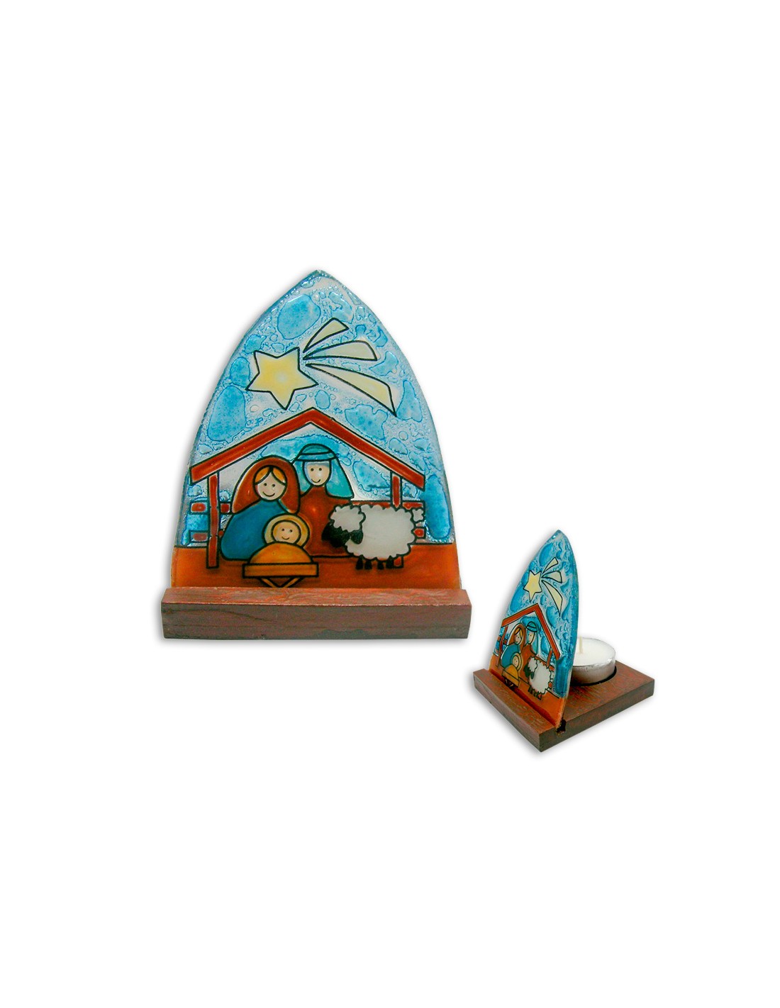 Nacimiento Placa Oval Cristal 9X7cm Nacimiento Pesebre Con Base Madera
