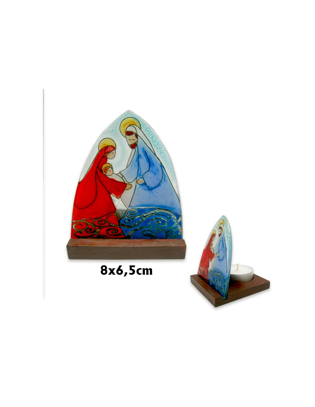 Nacimiento Placa Oval Cristal 9X7cm Sagrada Familia Moderna Con Base Madera