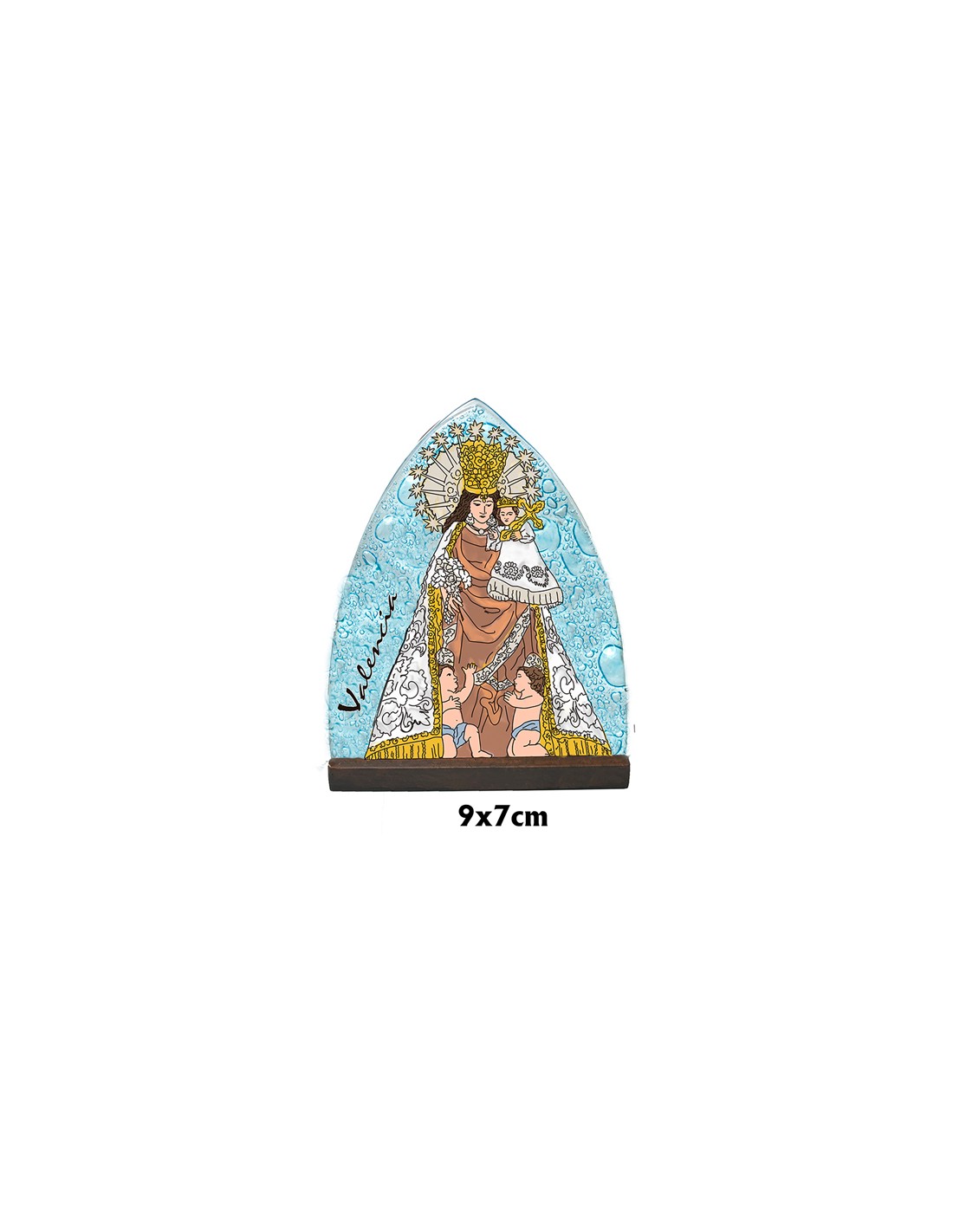 Placa Oval Cristal 9X7cm Virgen Desamparados Con Base Madera Y Vela