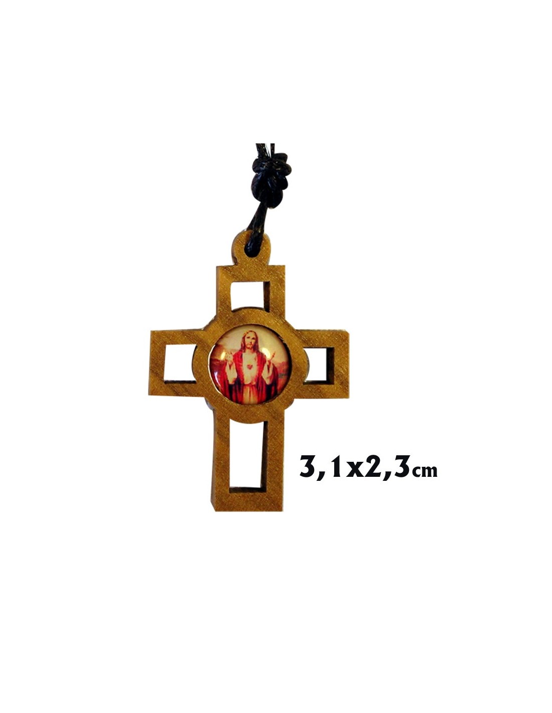 Cruz Madera Olivo Perforada Con Foto En El Centro
