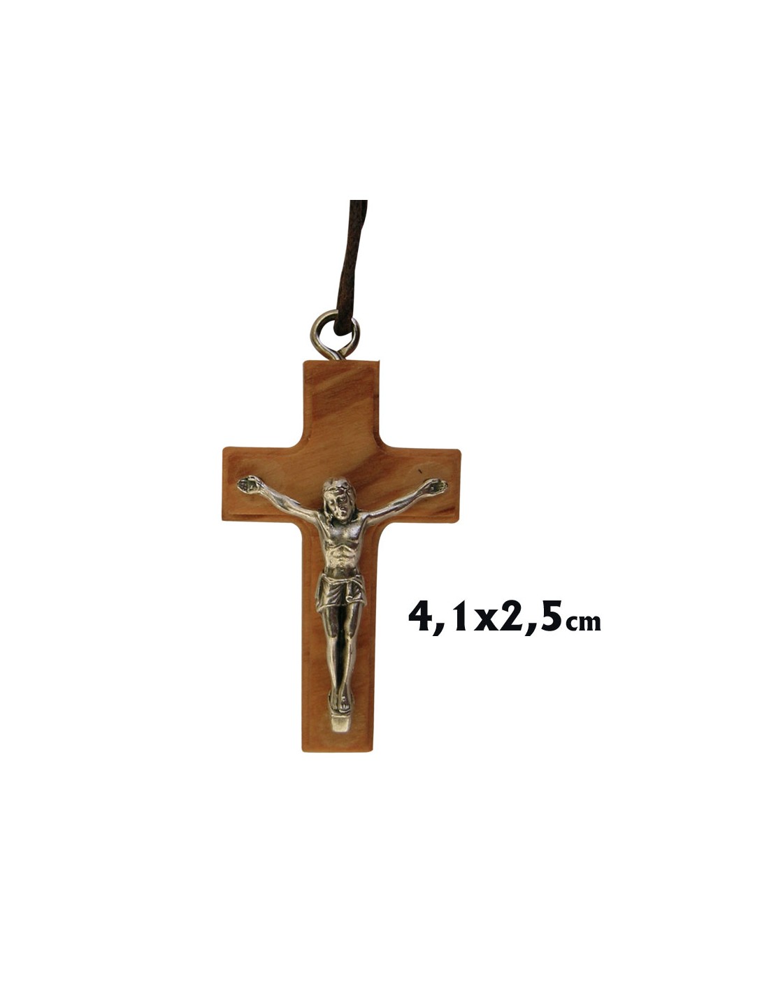 Cruz Madera Olivo 4. 1X2. 5Cm Con Cristo Con Los Cantos Planos