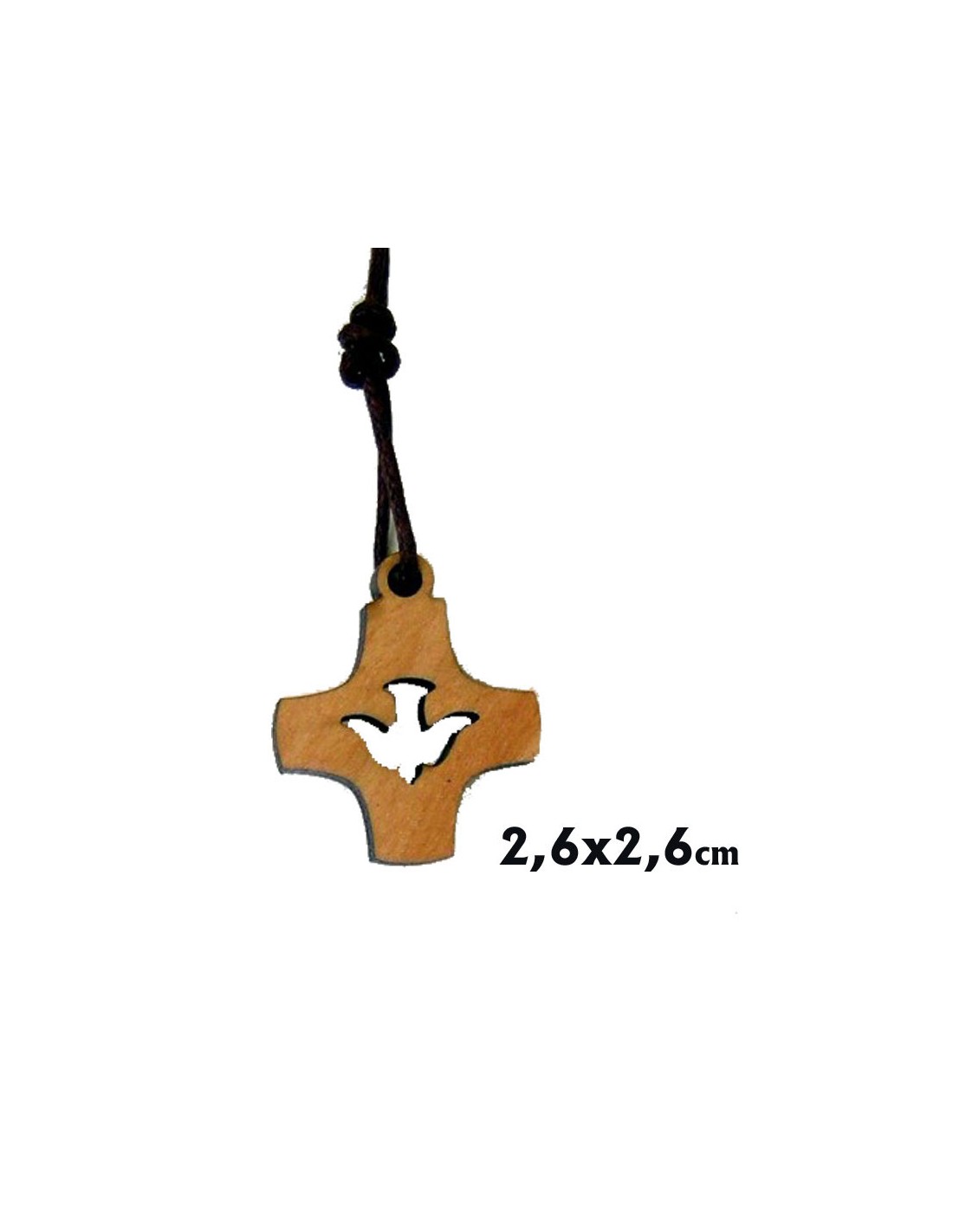 Cruz Colgante Madera Con Paloma Calada 26X26mm