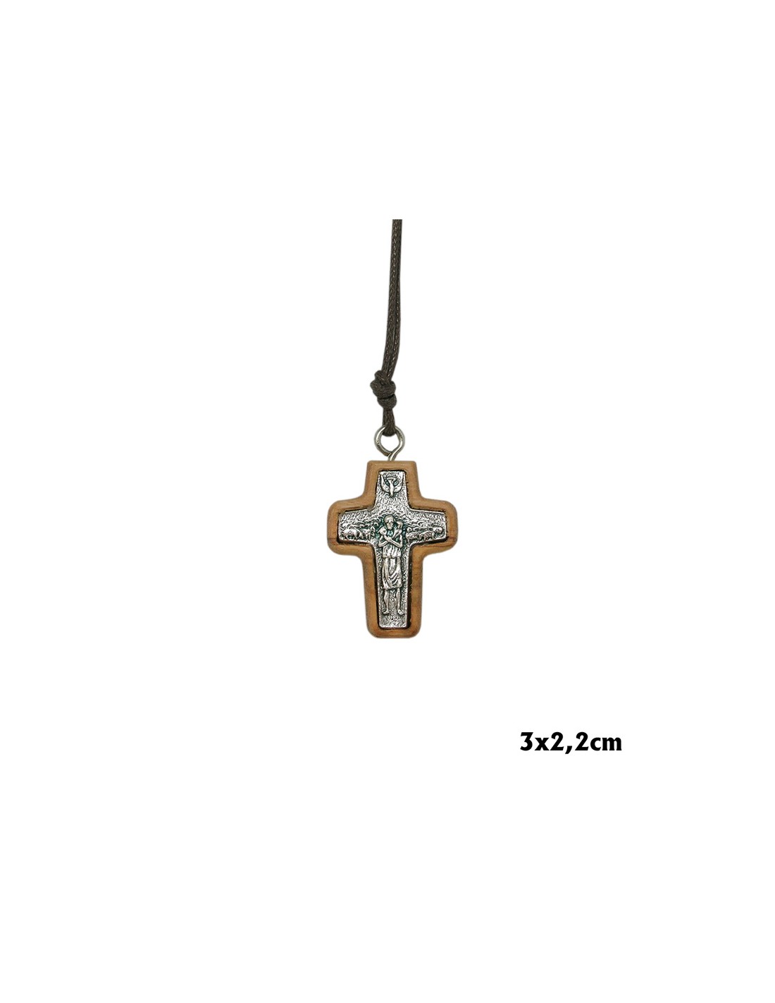 Cruz Madera Olivo Buen Pastor 30X22mm Con Interno De Metal