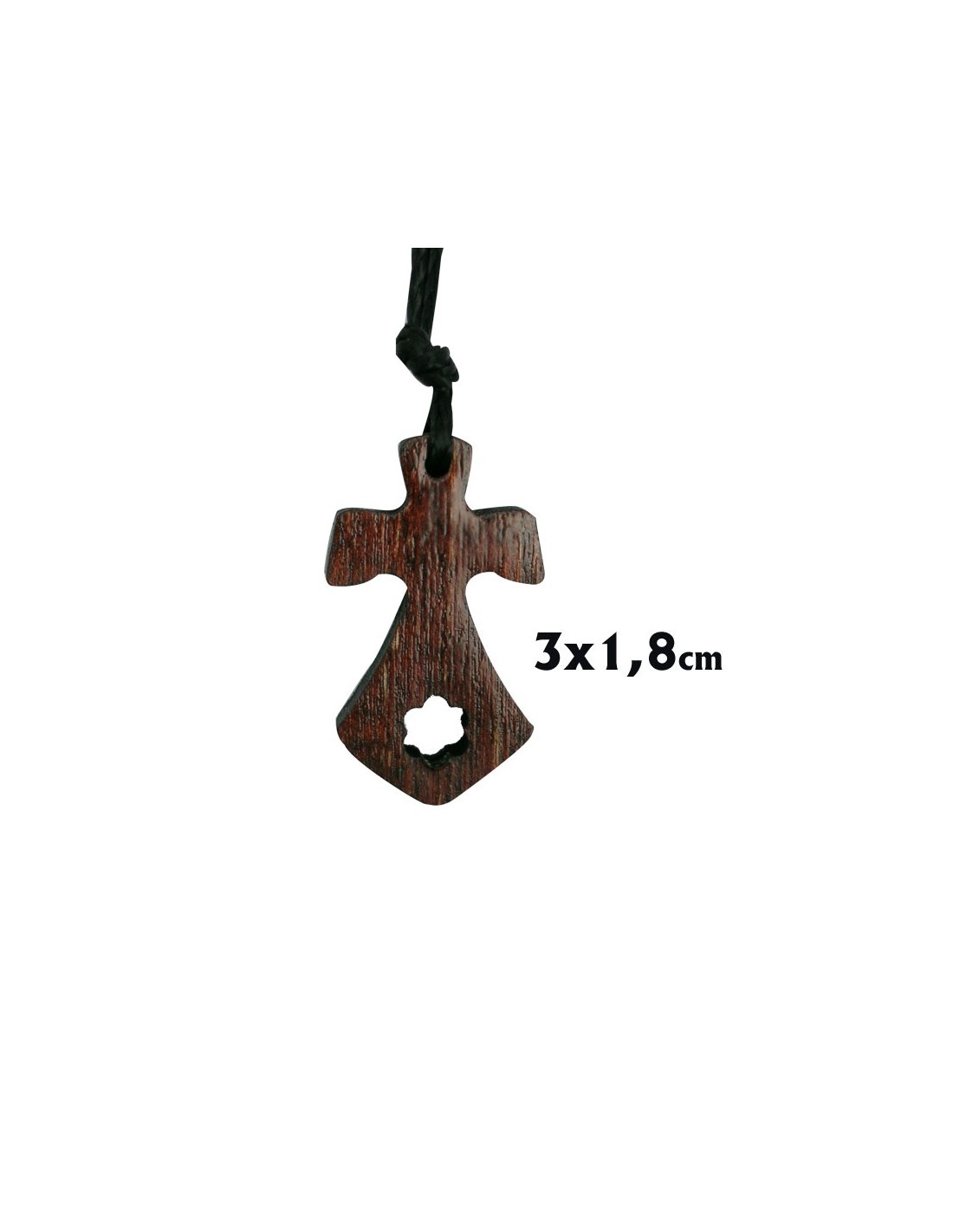 Cruz Carmelitana Madera Oscura 3X1. 8Cm Con Cordon
