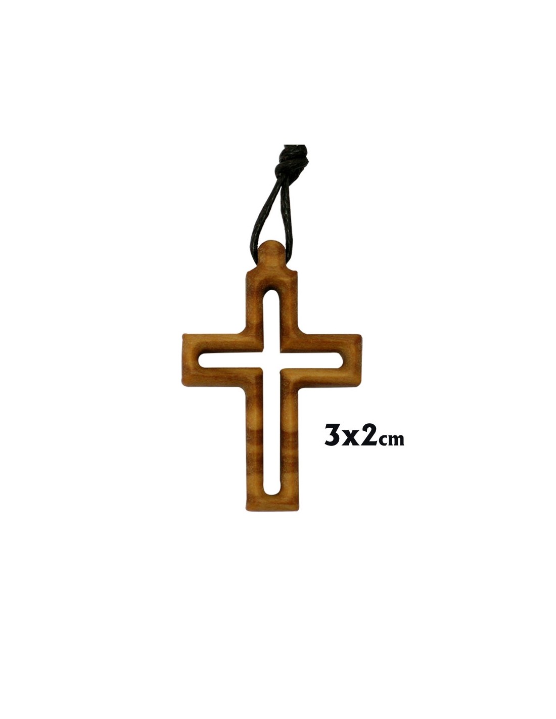 Cruz Madera Olivo Hueca 3X2cm Con Cordon
