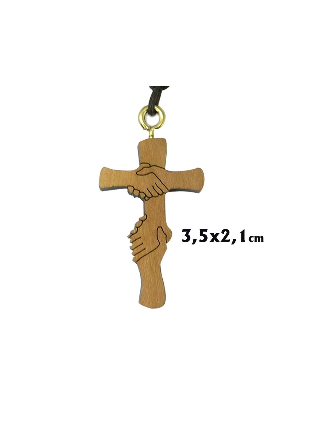 Cruz Madera Olivo De La Amistad 3.5 X 2.1 Cm Con Cordon Manos Entrelazadas
