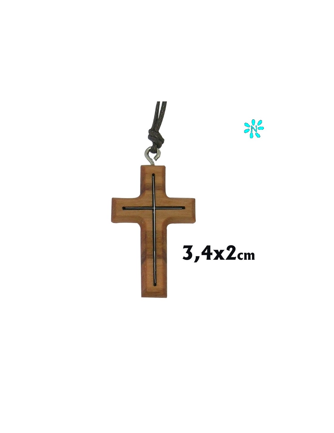 Cruz Madera 31X20mm Calado Fino Con Cordon Marron
