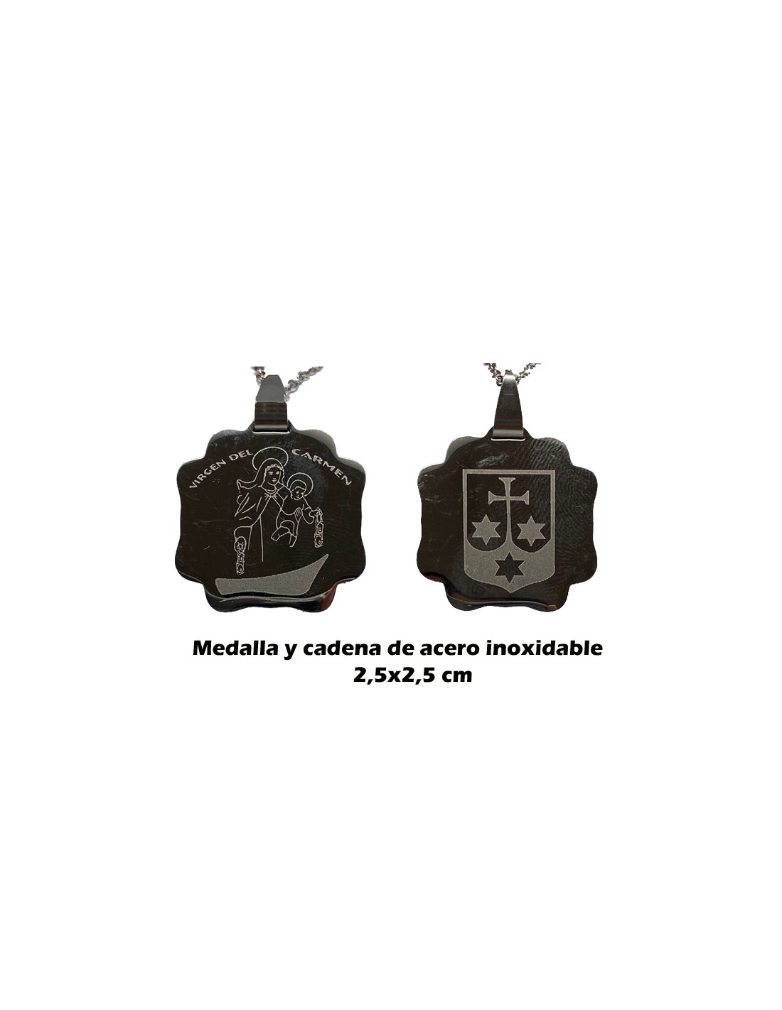 Medalla Virgen Carmen Acero Grabada 2. 5X2. 5Cm Con Cadena De Acero