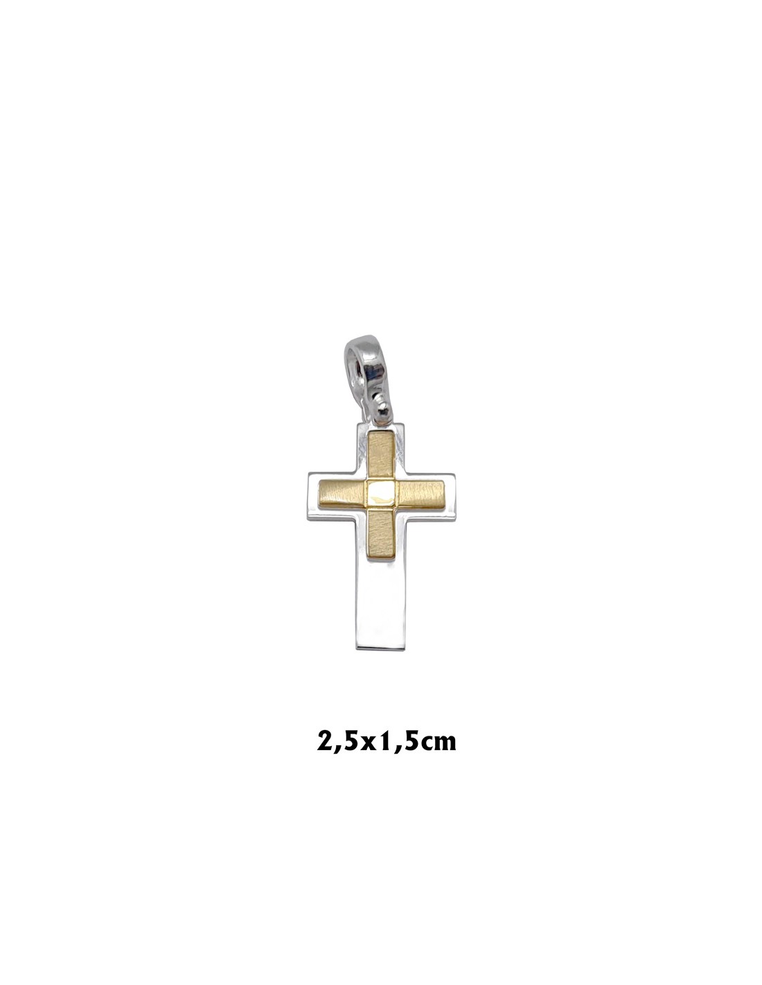 Cruz Plata 25X15mm Con Cruz Griega Dorada Interna Argolla Gruesa